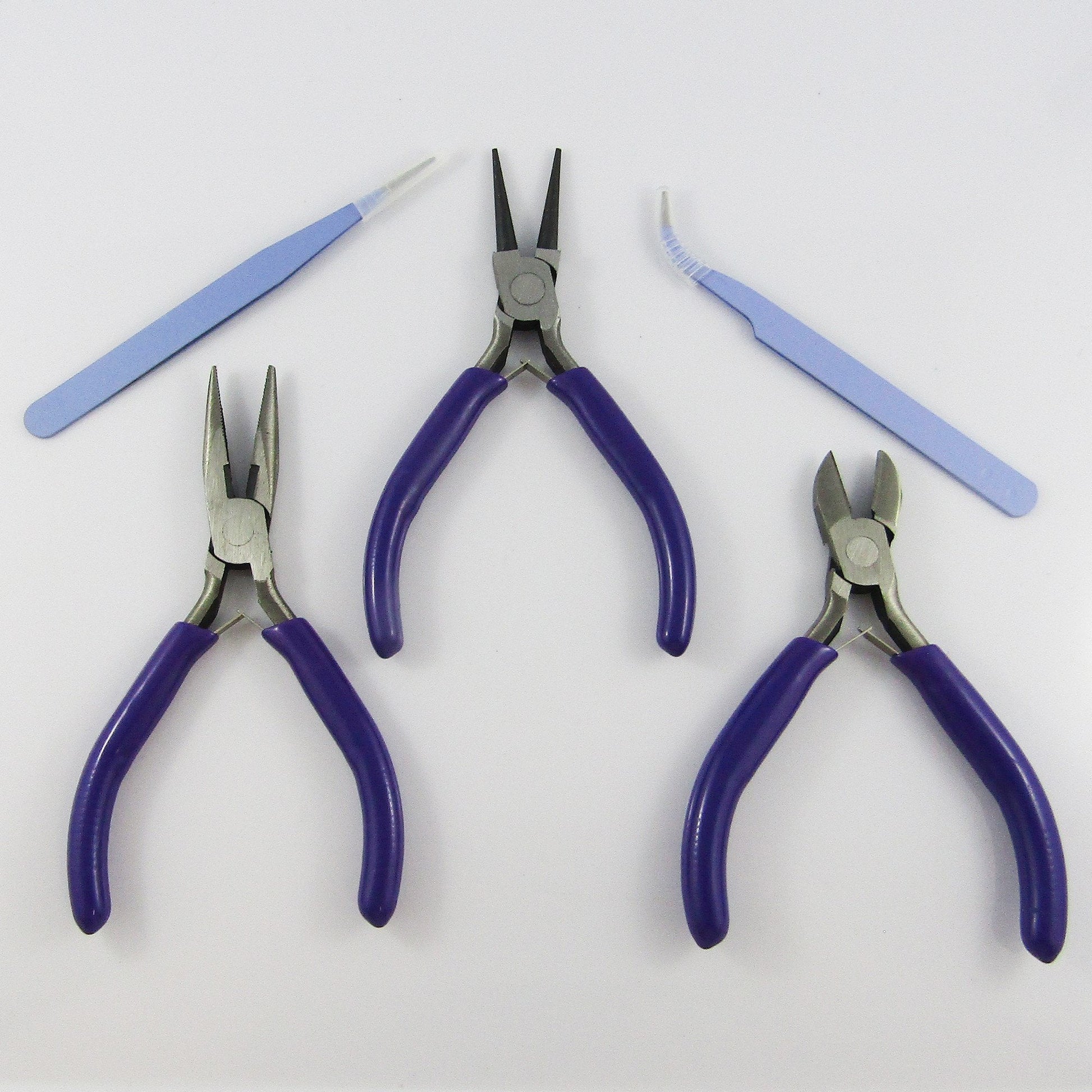 5pc Purple Jewellery Pliers and Tweezer set Round Nose Needle Nose Side Cutter