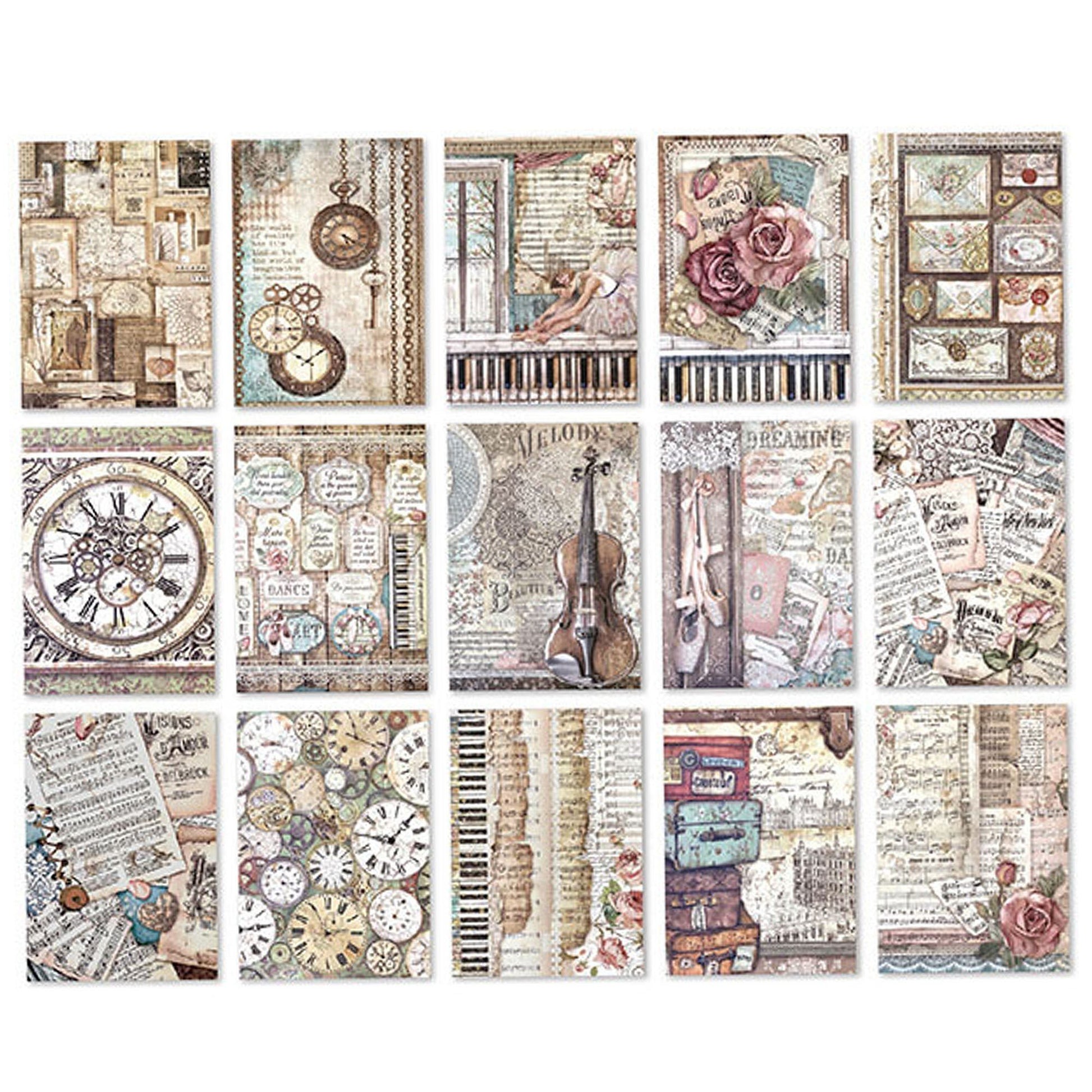 30pc Steampunk Music Retro Scrapbook Papers Cards Journal Ephemera 140x100mm