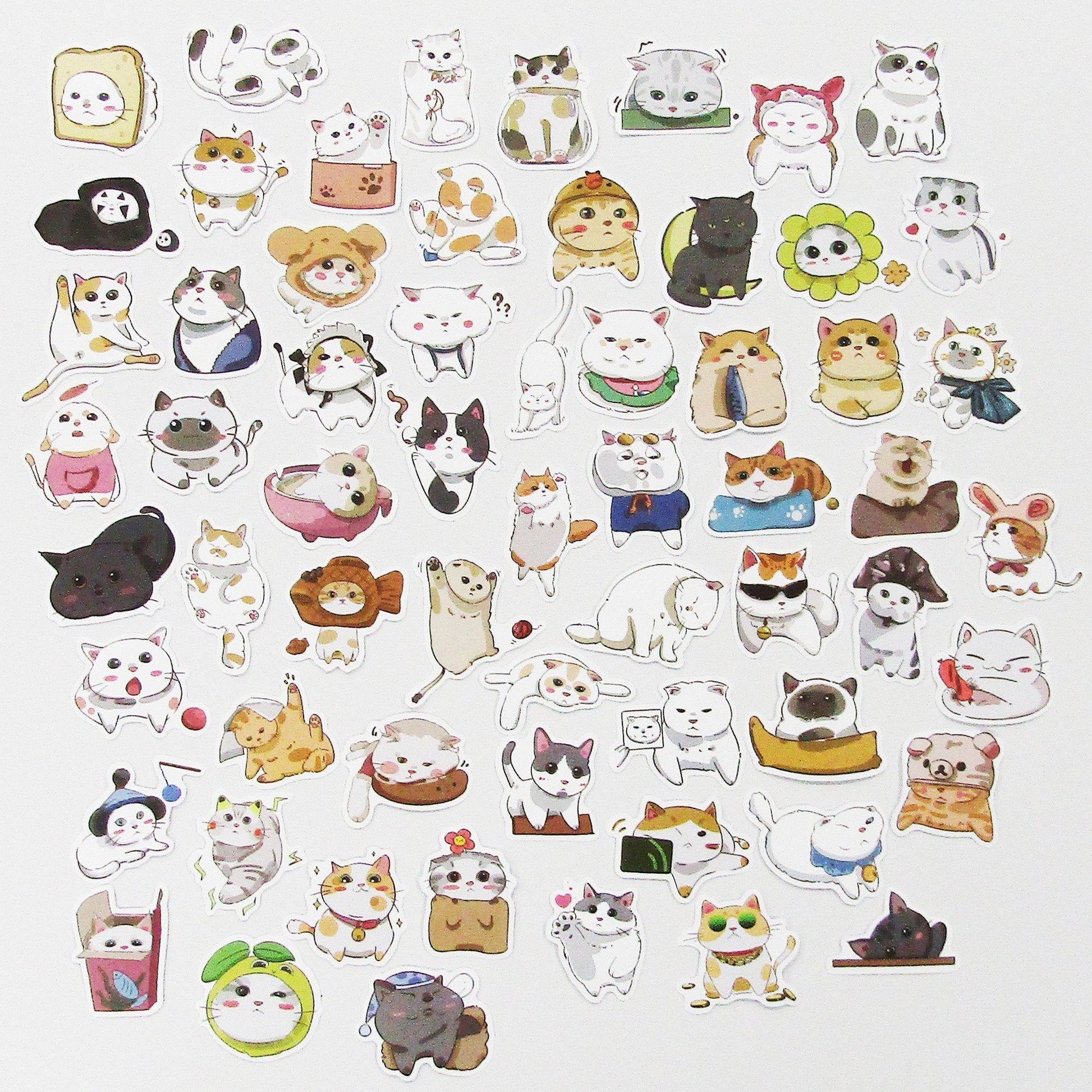 60pcs Cartoon Cat Sticker Bundle Schoolbooks Cards Junk Journal