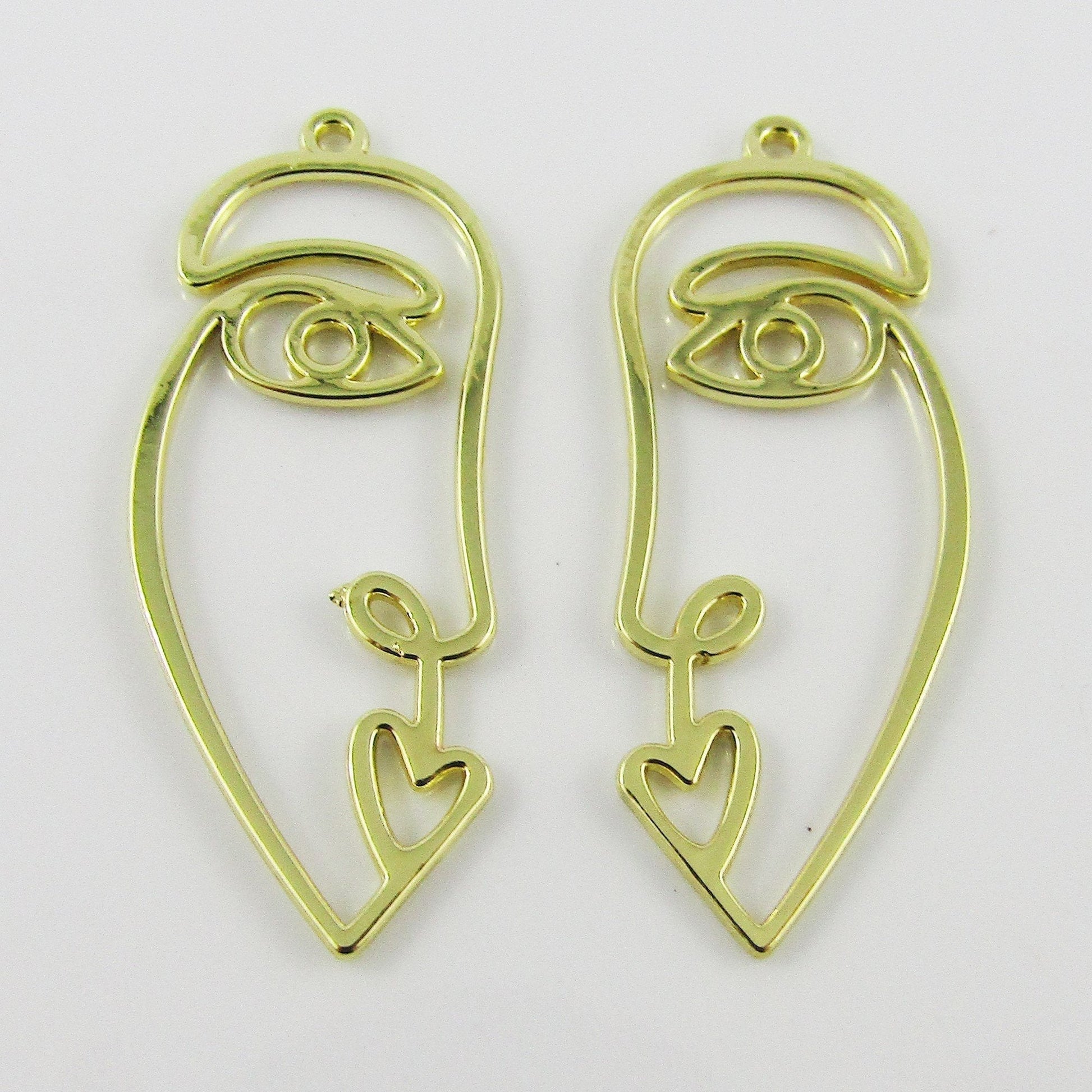 6pcs Abstract Face Picasso Charm Pendant Gold Plate 40x16mm Open Bezel