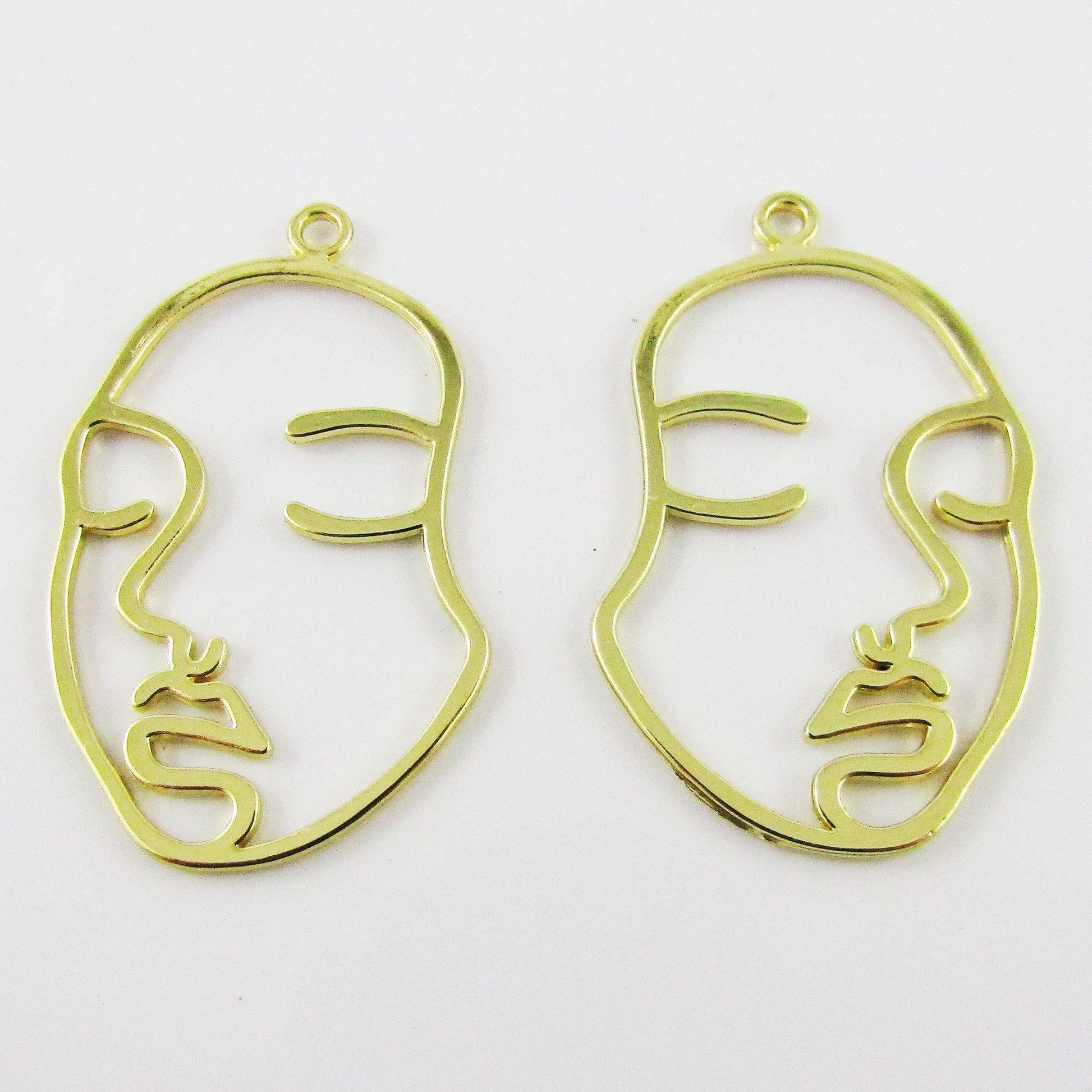 6pcs Abstract Face Serene Girl Charm Pendant Gold Plate 44x29mm Open Bezel