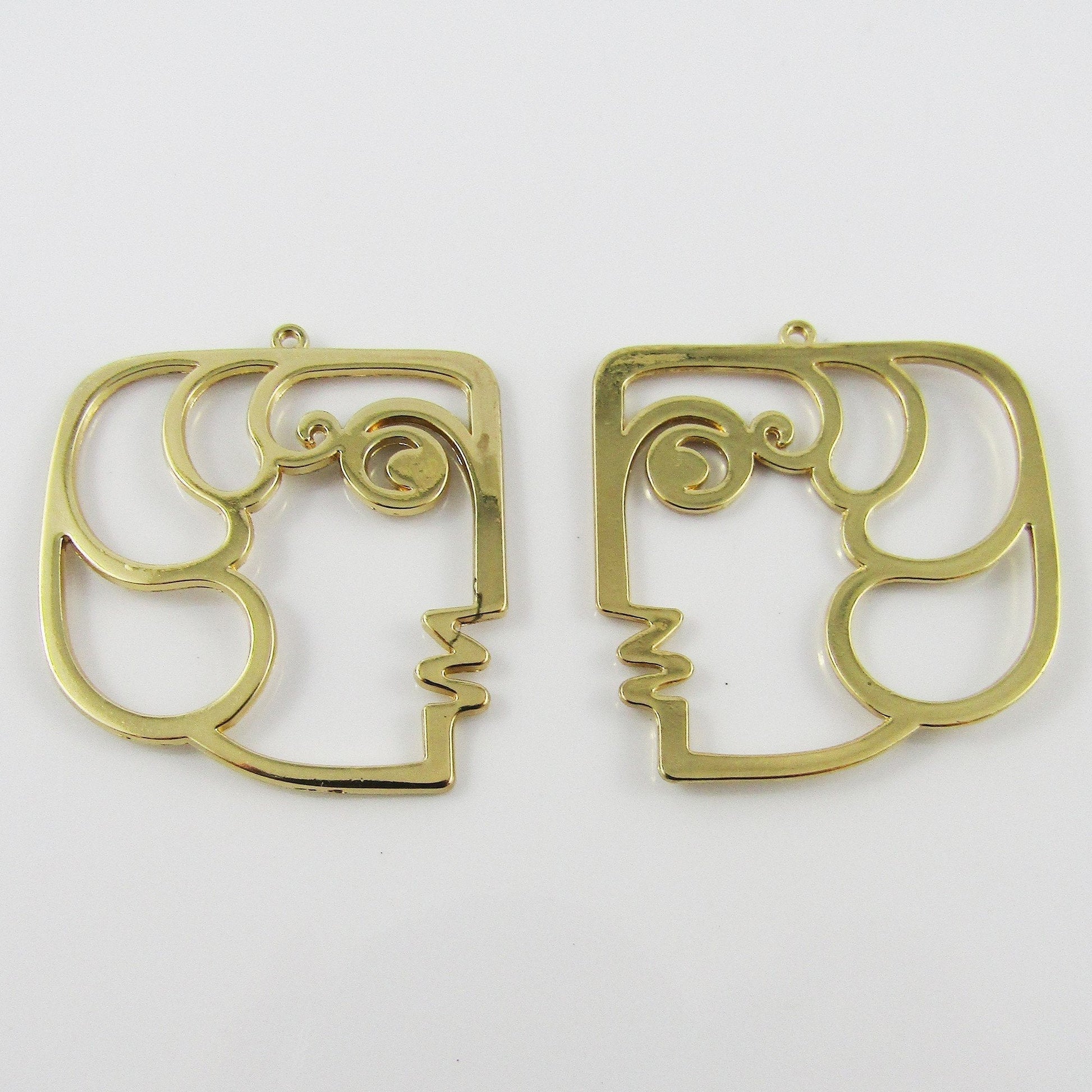6pcs Abstract Face Square Picasso Charm Pendant Gold Plate 39x35mm Open Bezel