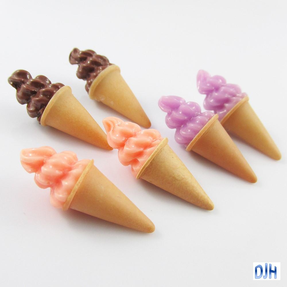 6pcs DIY 3D Resin Icecream Cone Cabochon Cards Scrapbooking Hair Clips