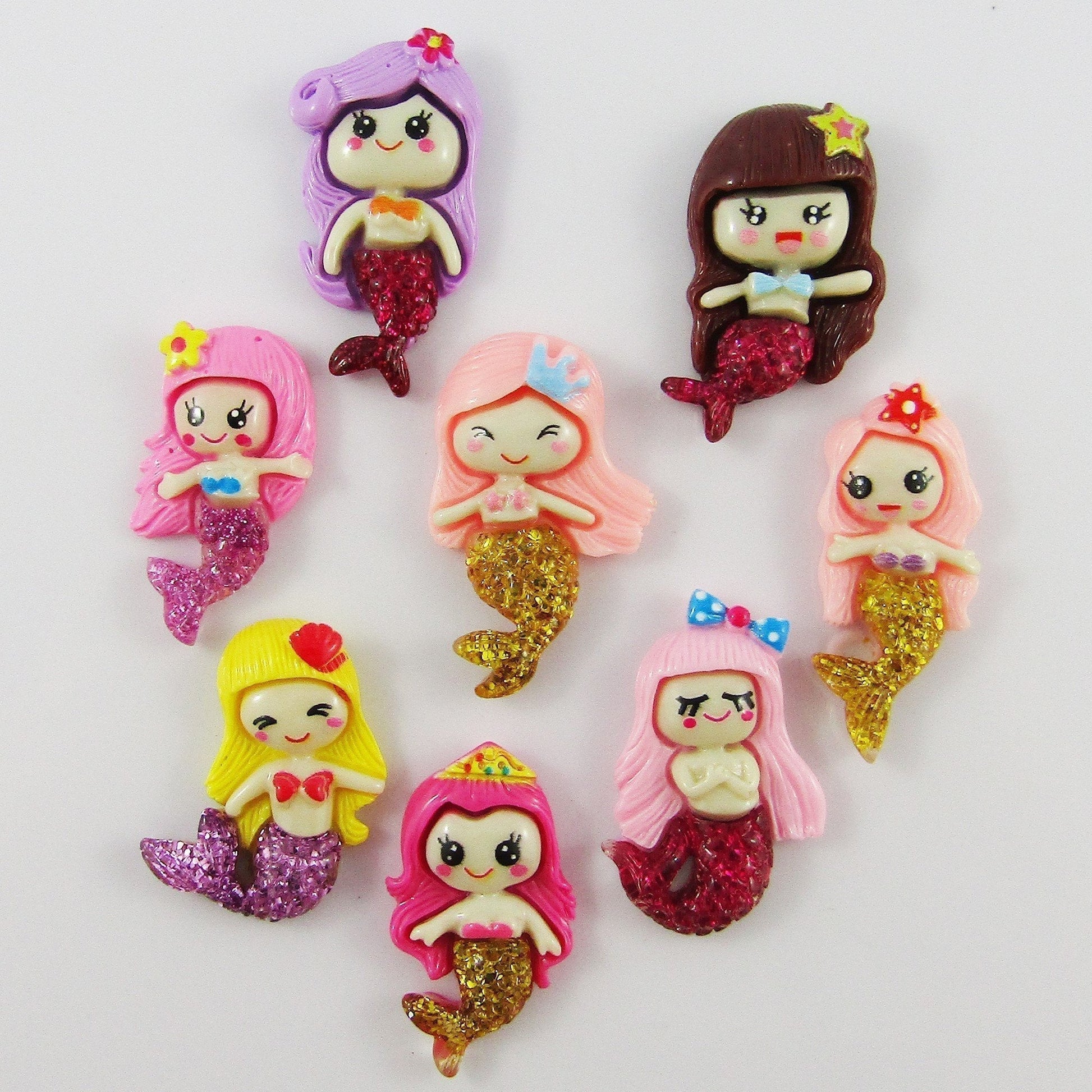 8pcs DIY Resin Mermaid Cabochon Flat Back Hair Clips Scrapbooking etc
