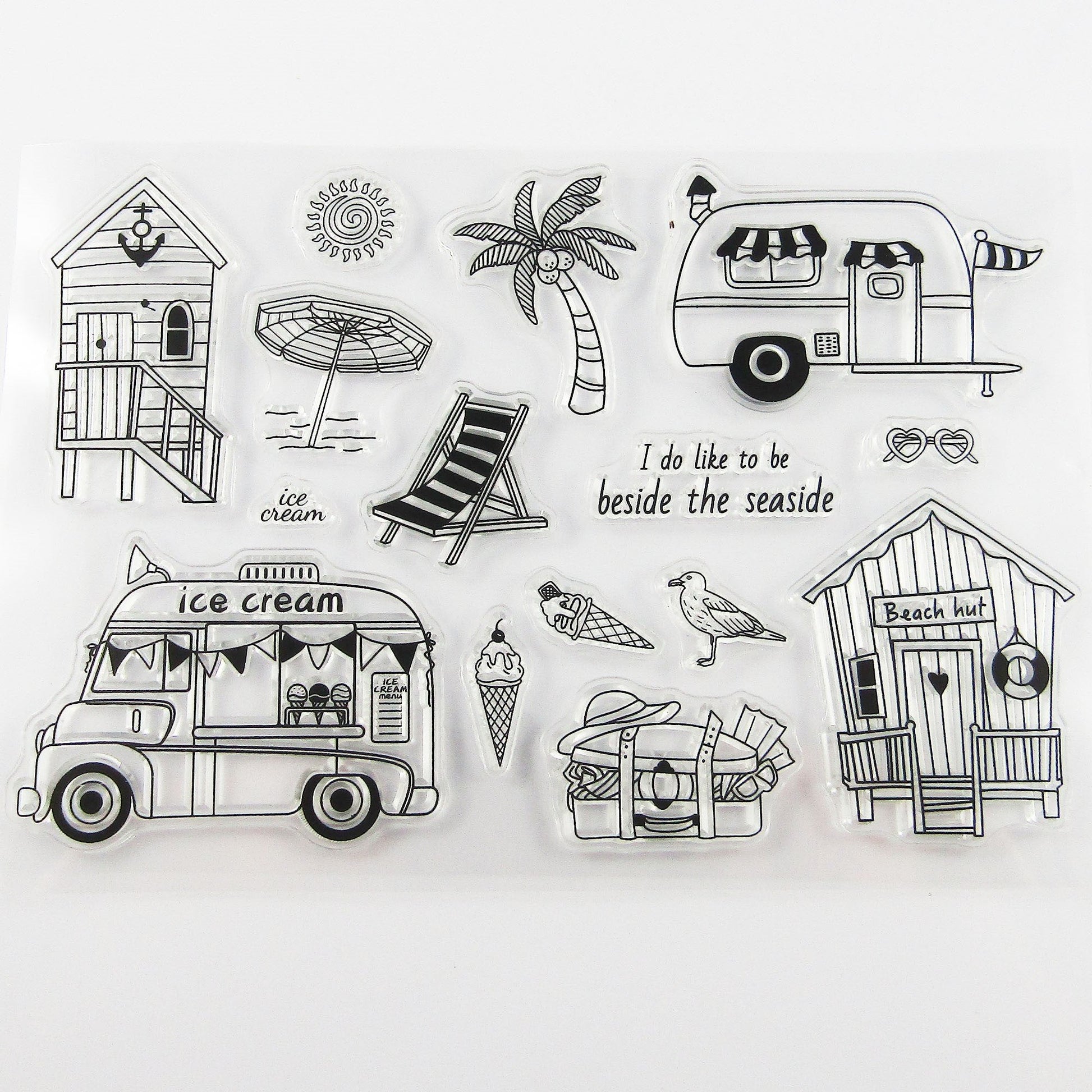 Beach Hut Seaside Clear Stamp Sheet Silicone Rubber Journal Scrapbook Cards