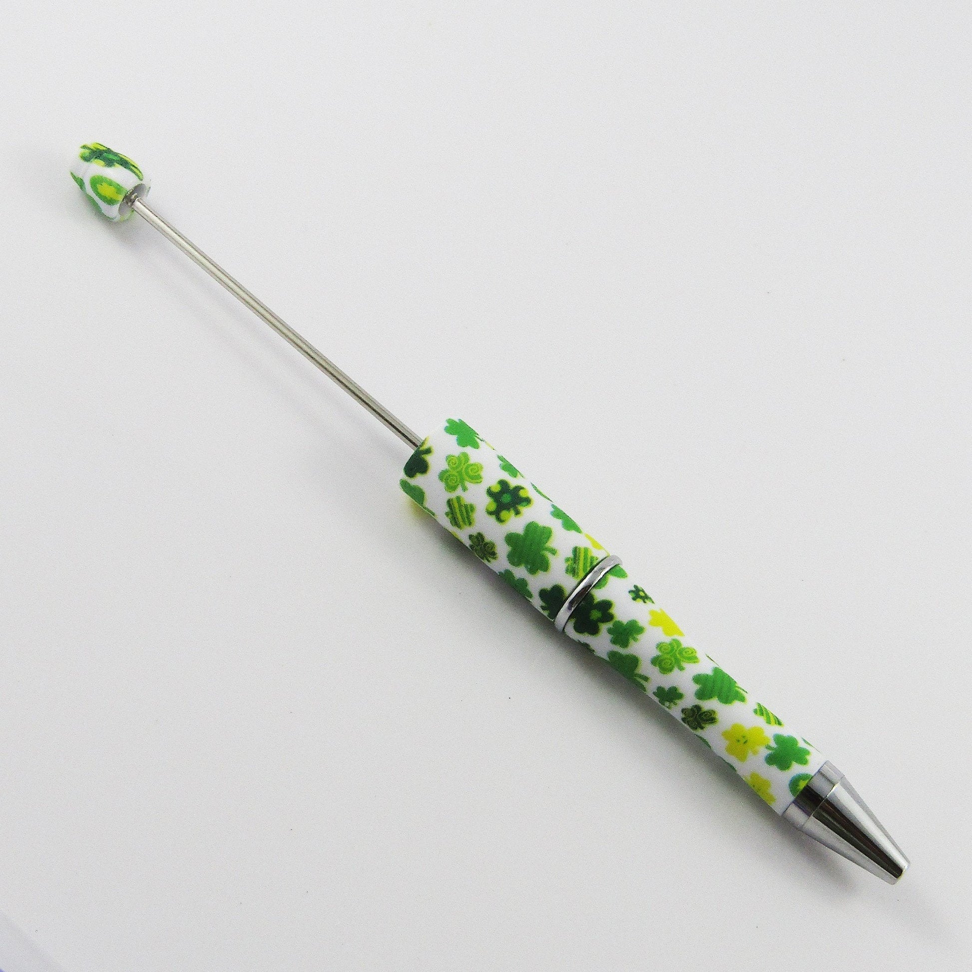 Blank DIY St Patricks Lucky Shamrock Print Beadable Pens with twist tip