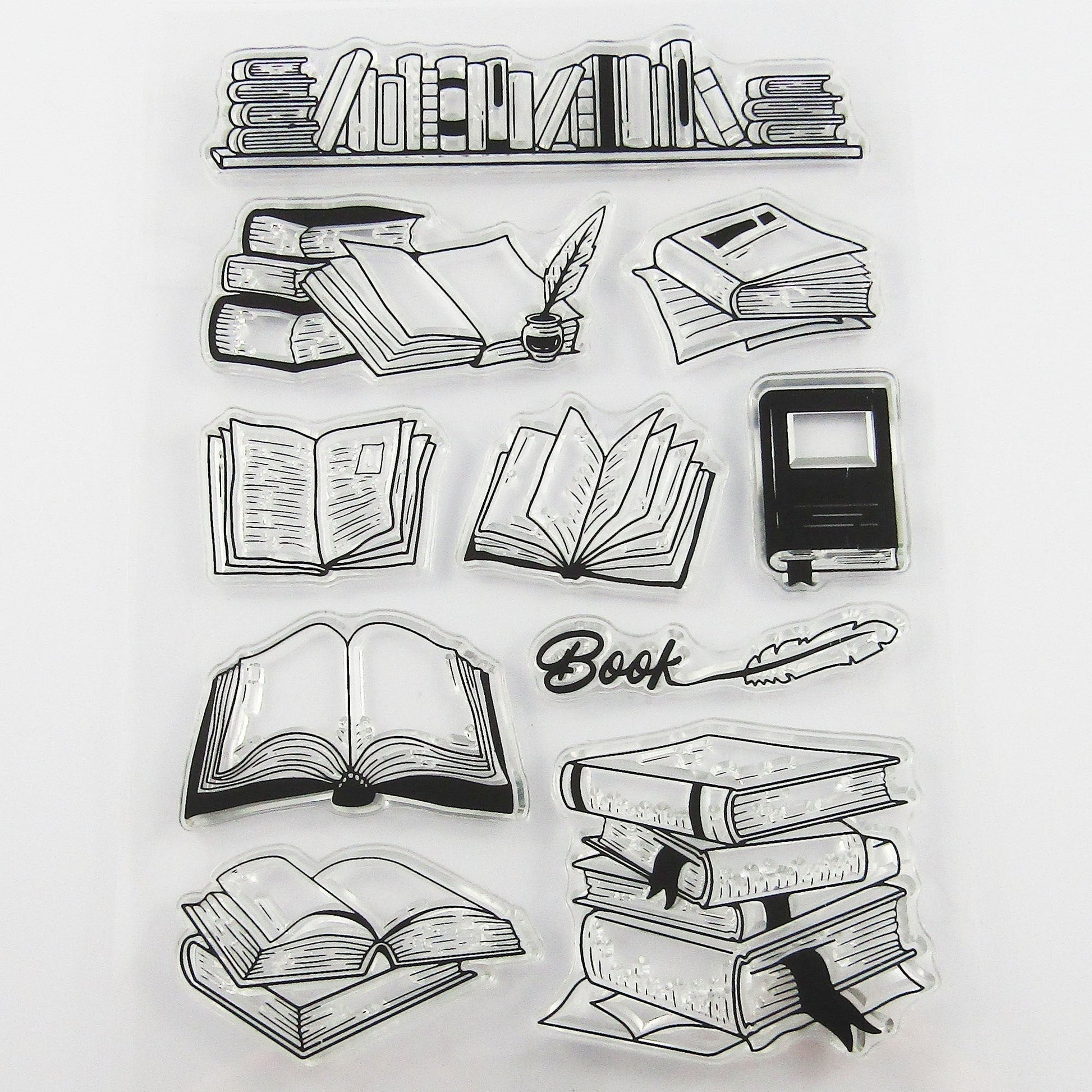 Books on a Bookshelf Clear Stamp Sheet Silicone Journal Scrapbook Cards