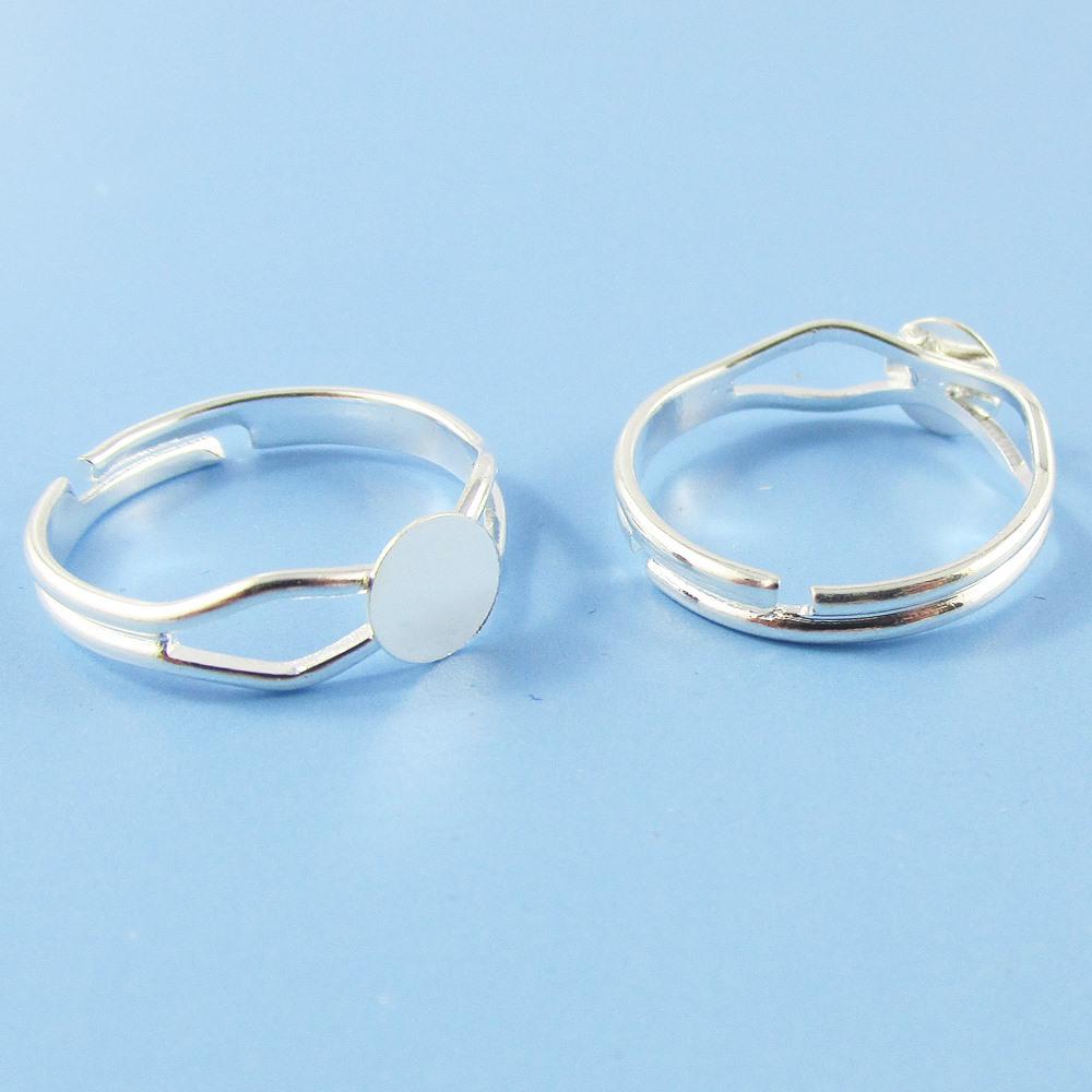 Bulk 10pce DIY Adjustable Ring Base with 6mm Glue Pad 18mm Dia SP Brass
