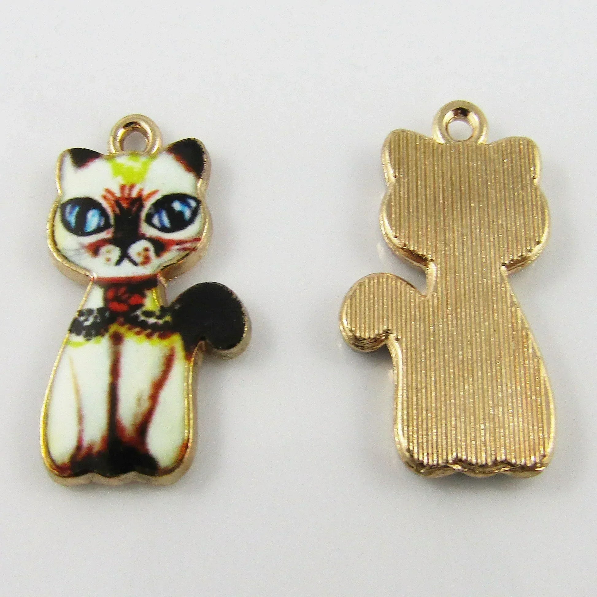 Bulk 10pce Enamel Cute Cat Charm Pendant Pet Animal 23x14mm