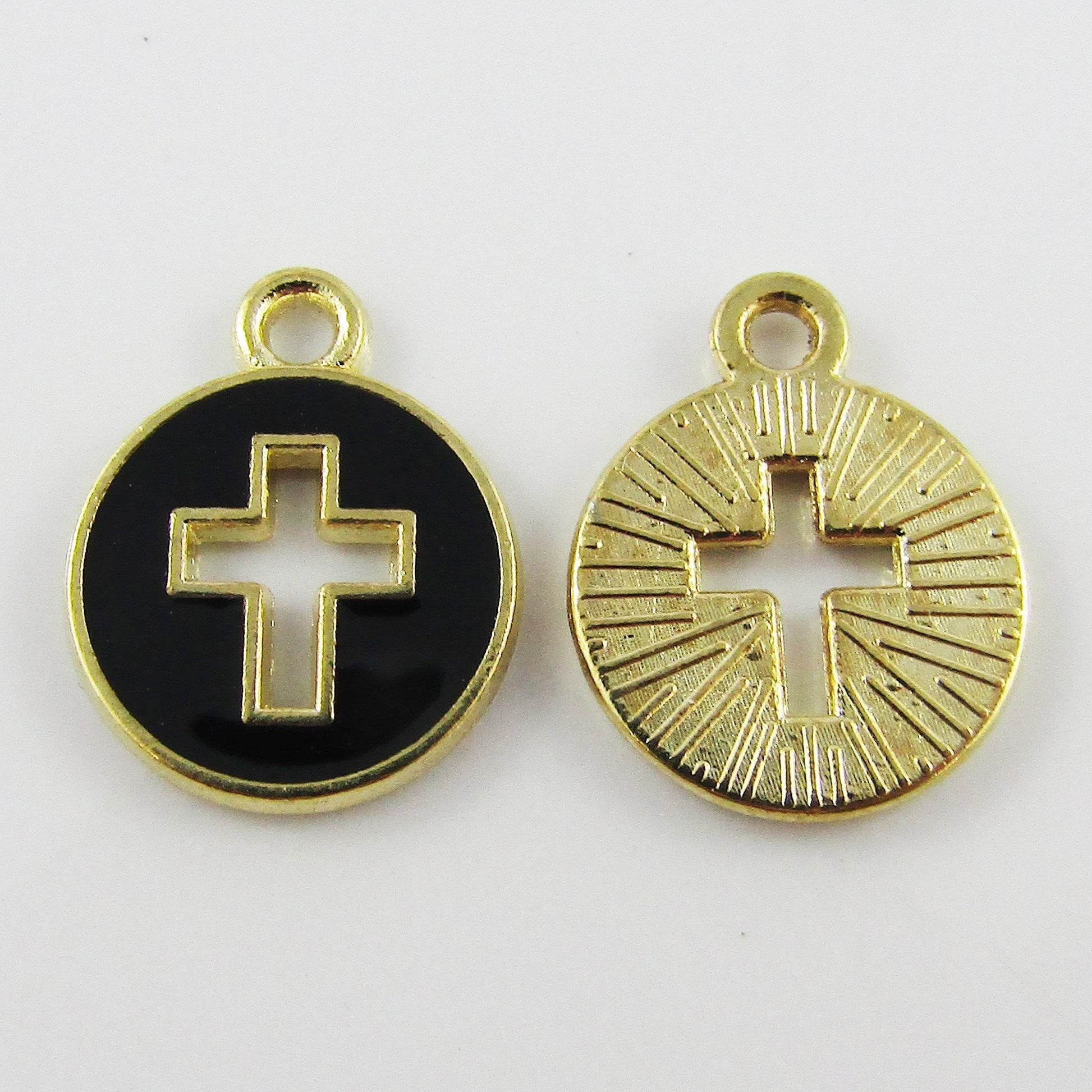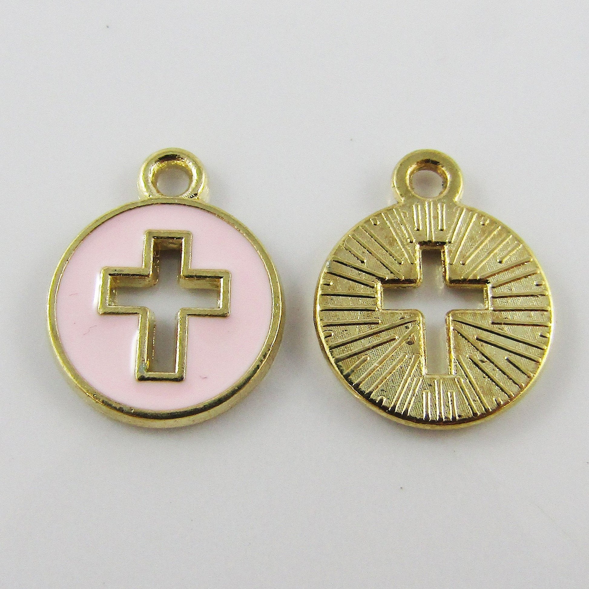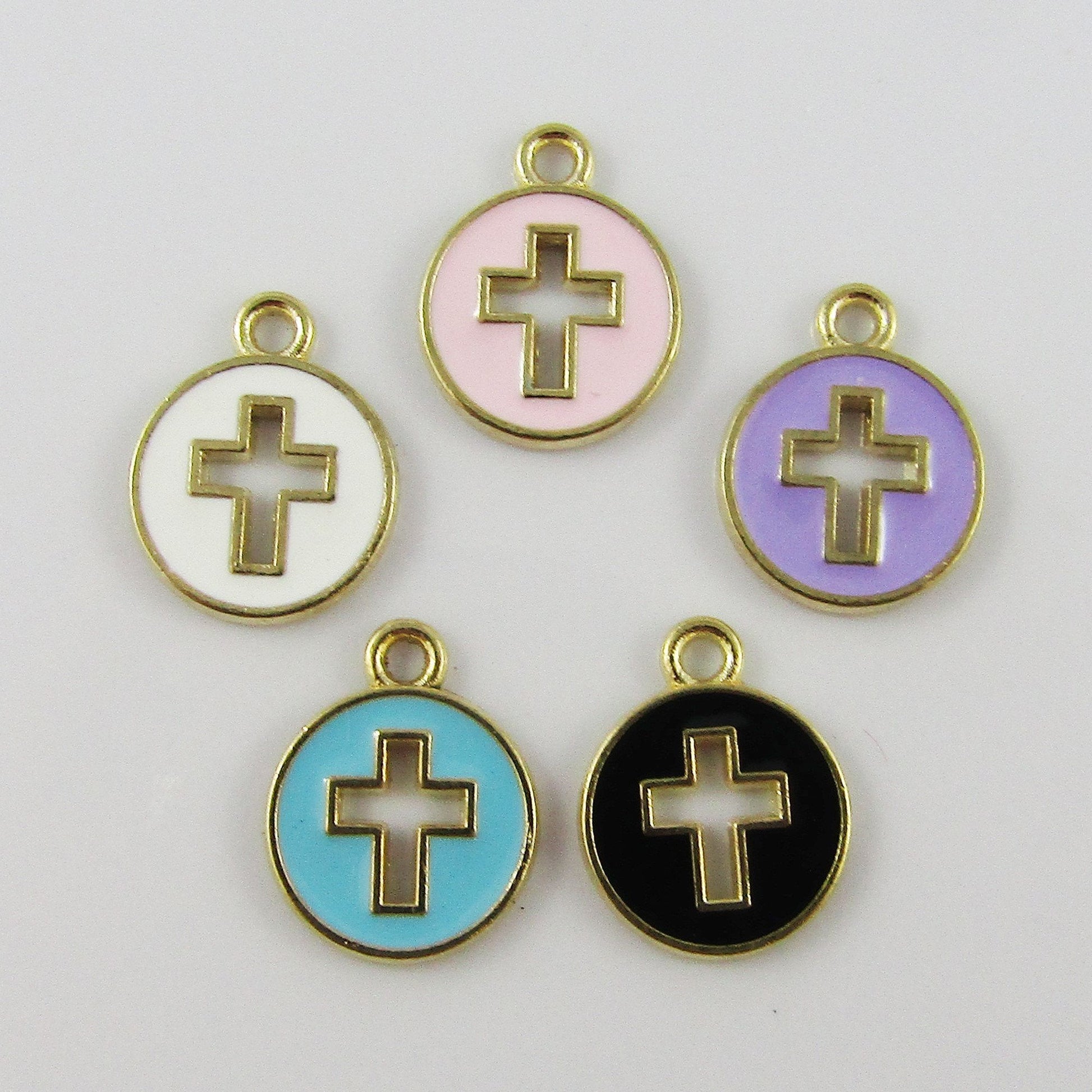 Bulk 10pce Enamel Cross Disc Charm Pendant Religious Cross 15x12mm Select Colour