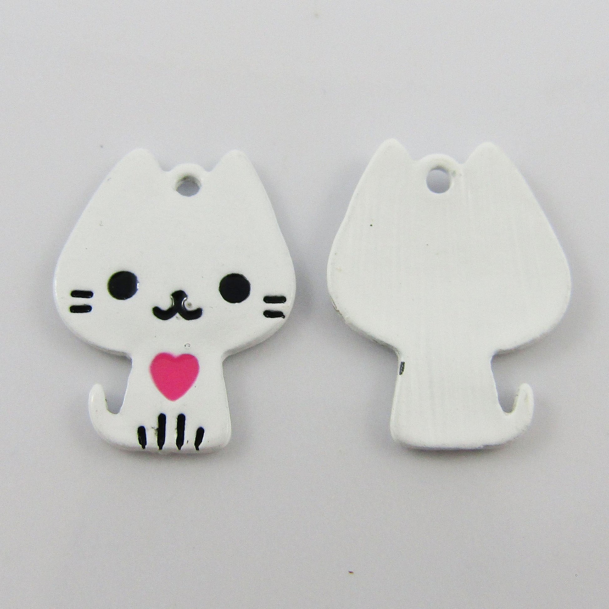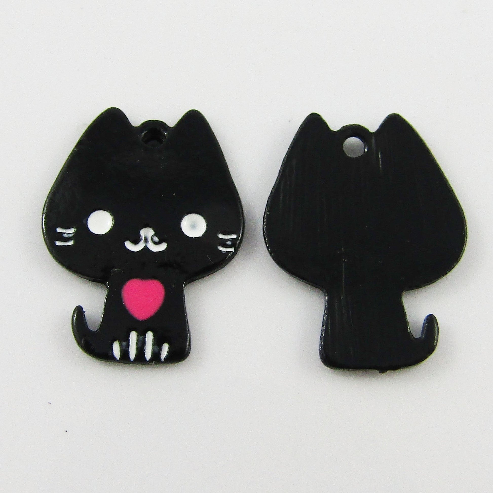 Bulk 10pce Enamel Heart Cat Charm Pendant Animal Pet Love 15x20mm Select Colour