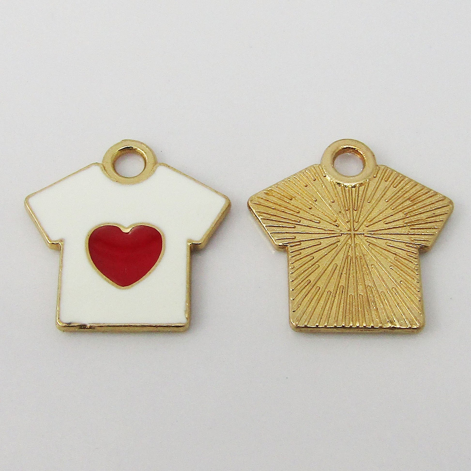 Bulk 10pce Enamel Heart T-Shirt Charm Pendant Light Gold White 16x16mm