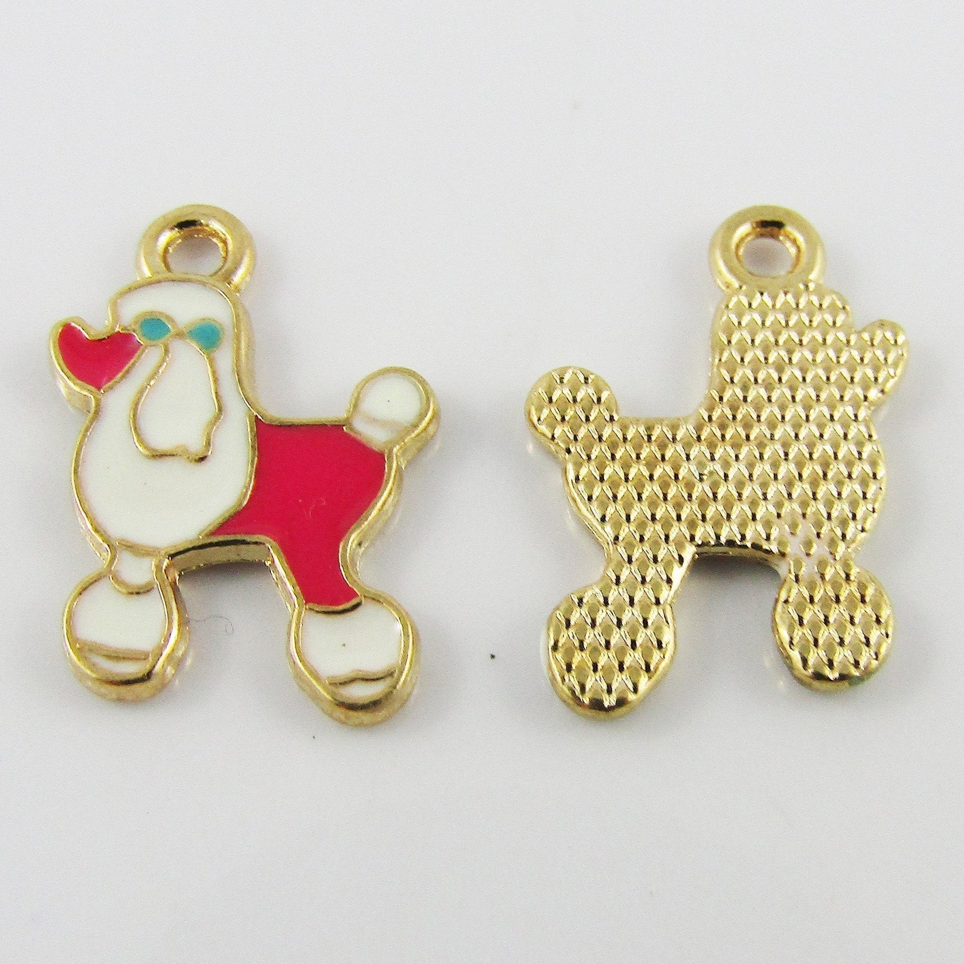 Bulk 10pce Enamel Poodle Puppy Dog Charm Pendant 19x14mm