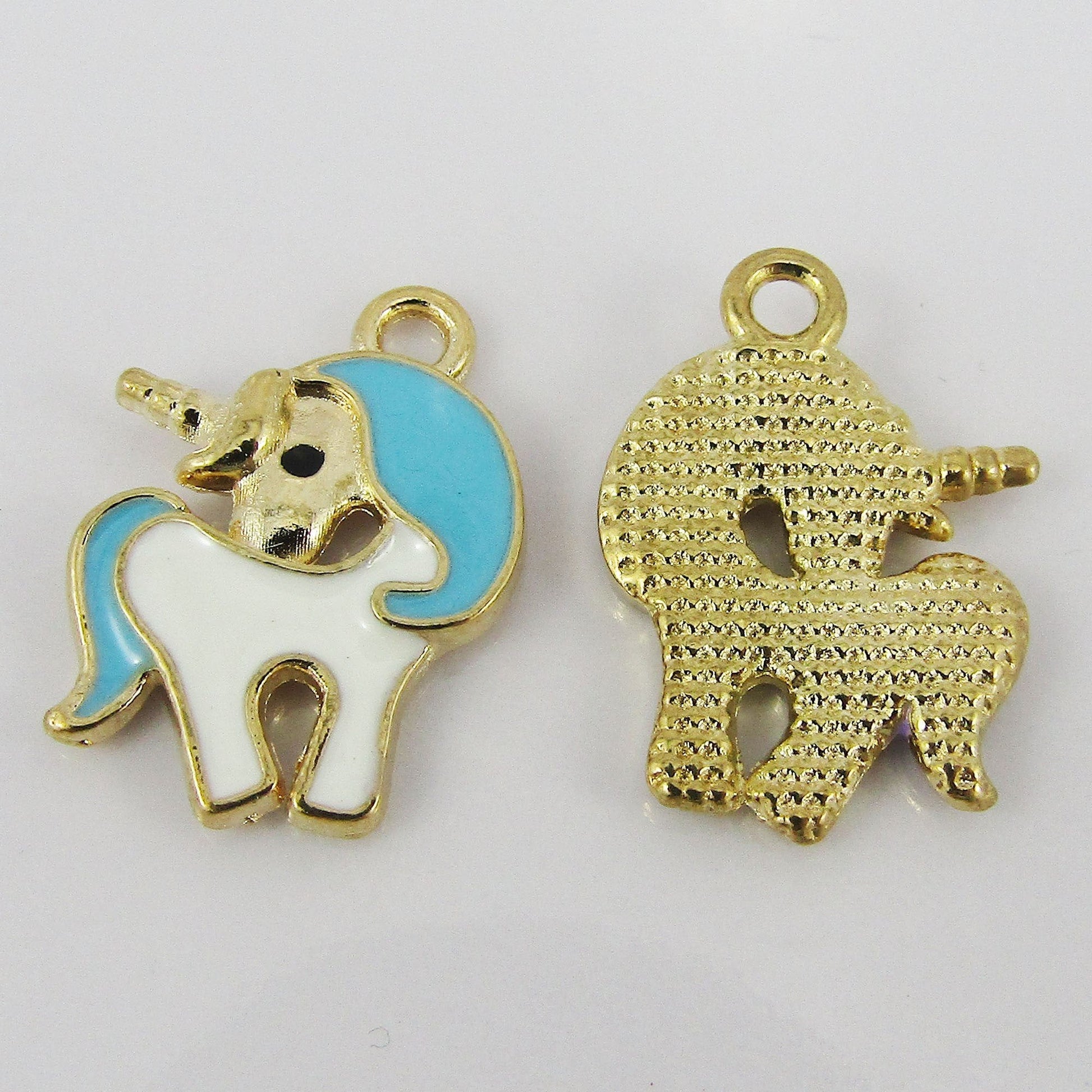 Bulk 10pce Enamel Unicorn Charm Pendant Light Gold & Blue Lilac or Pink 20x15mm