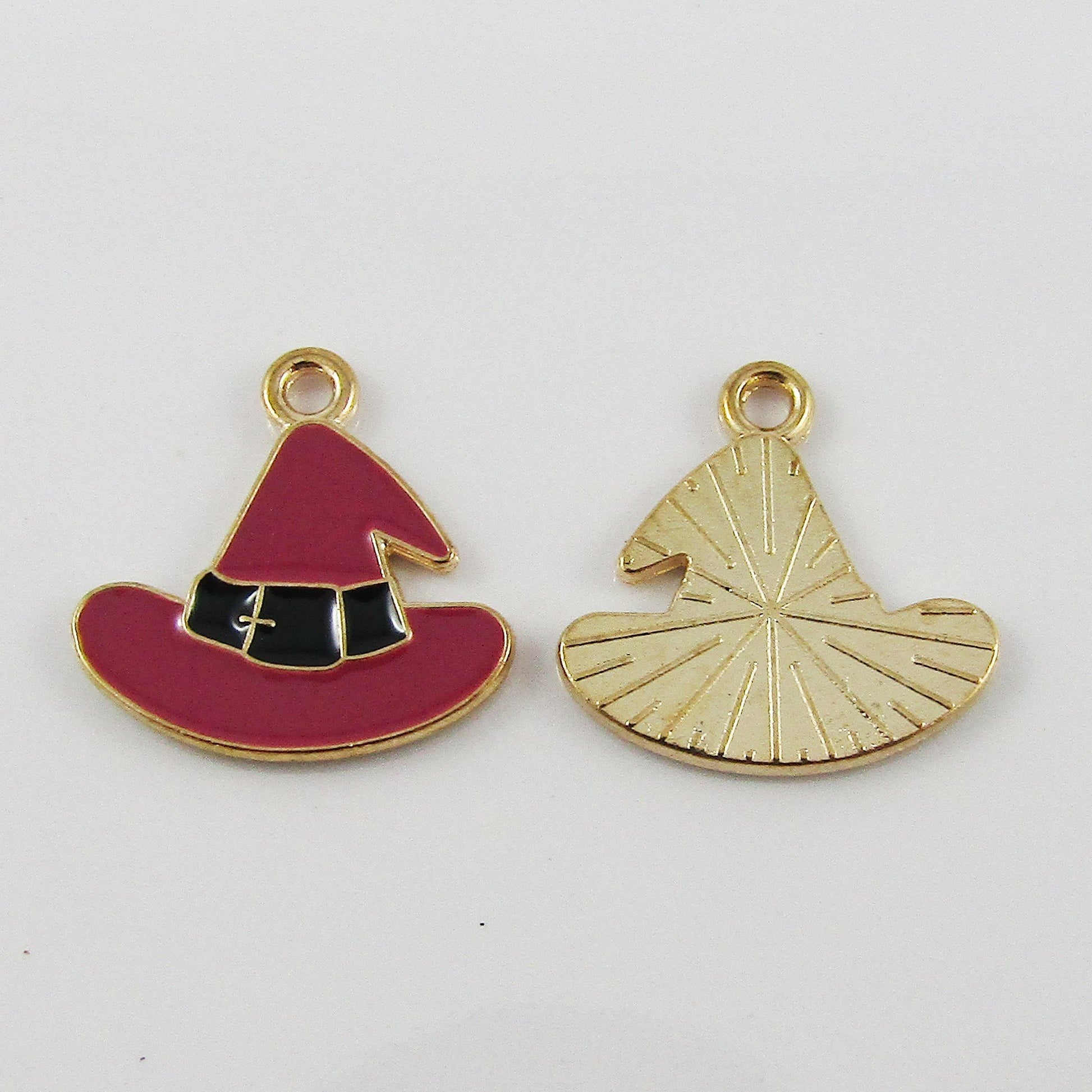Bulk 10pce Enamel Witch Hat Halloween Charm Pendant Light Gold Colourful 17x17mm