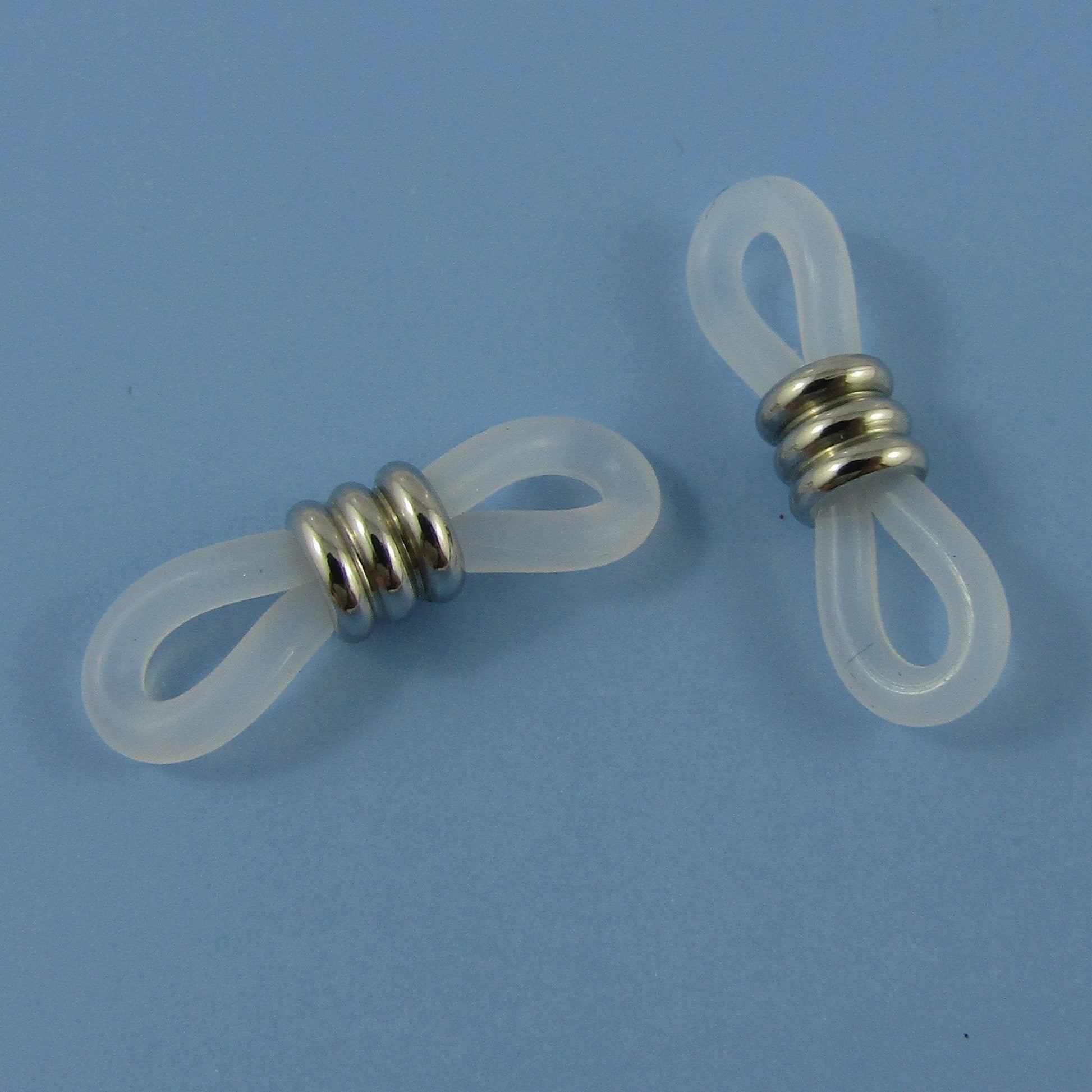 Bulk 10pcs (5sets) Rubber End Connectors Eyeglass Chains 20x6mm Clear 302SSteel