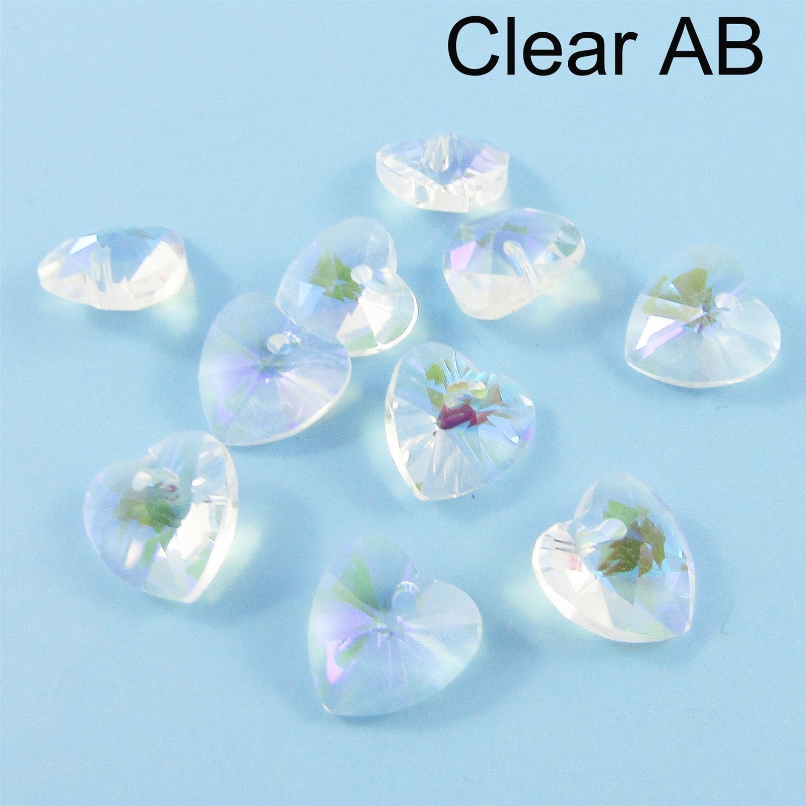 Bulk 10pcs Glass Faceted Heart Charm Pendant 10mm Select 12 Colours