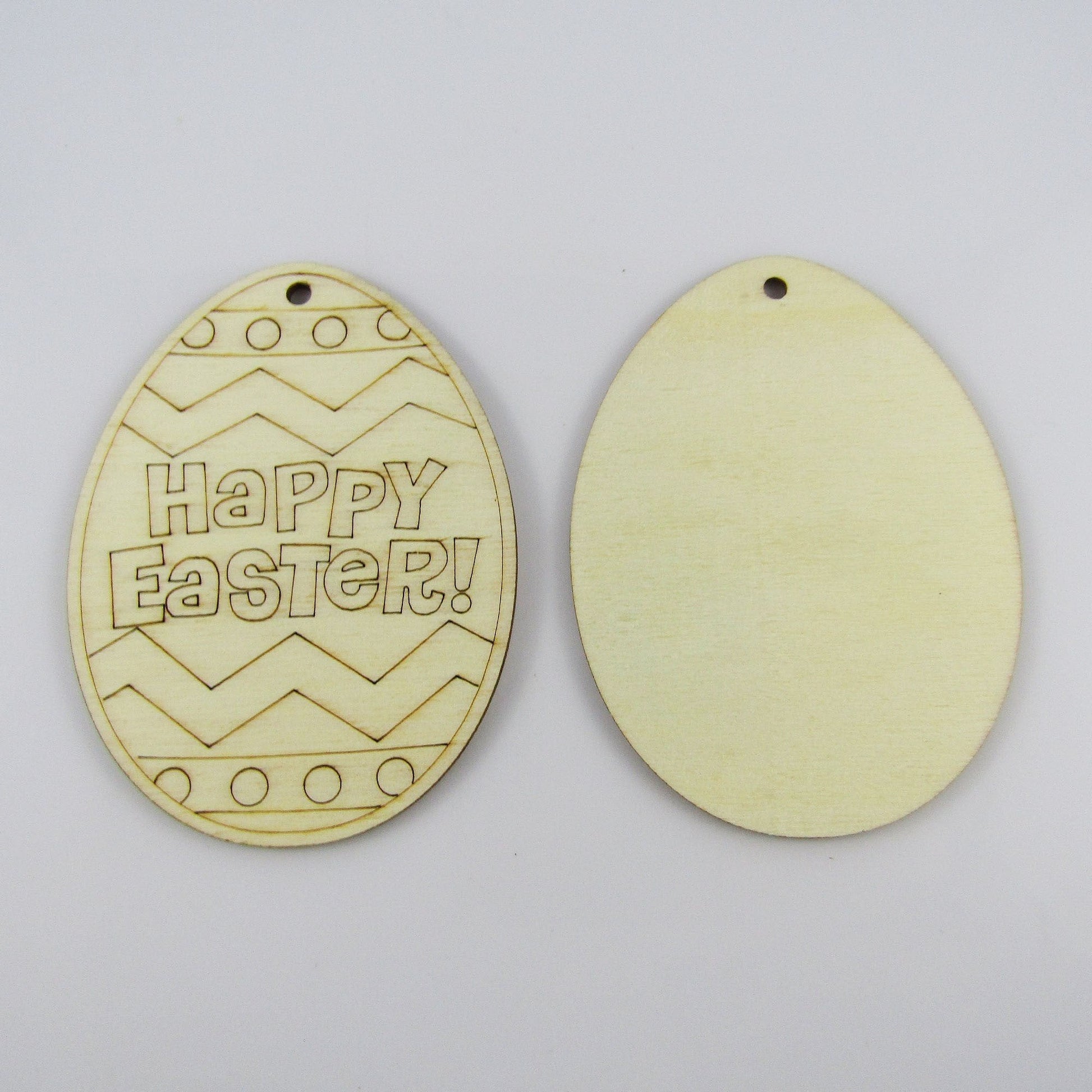 Bulk 10pcs Happy Easter Egg Unfinished Wood Pendant Natural 60x80mm Kids Craft