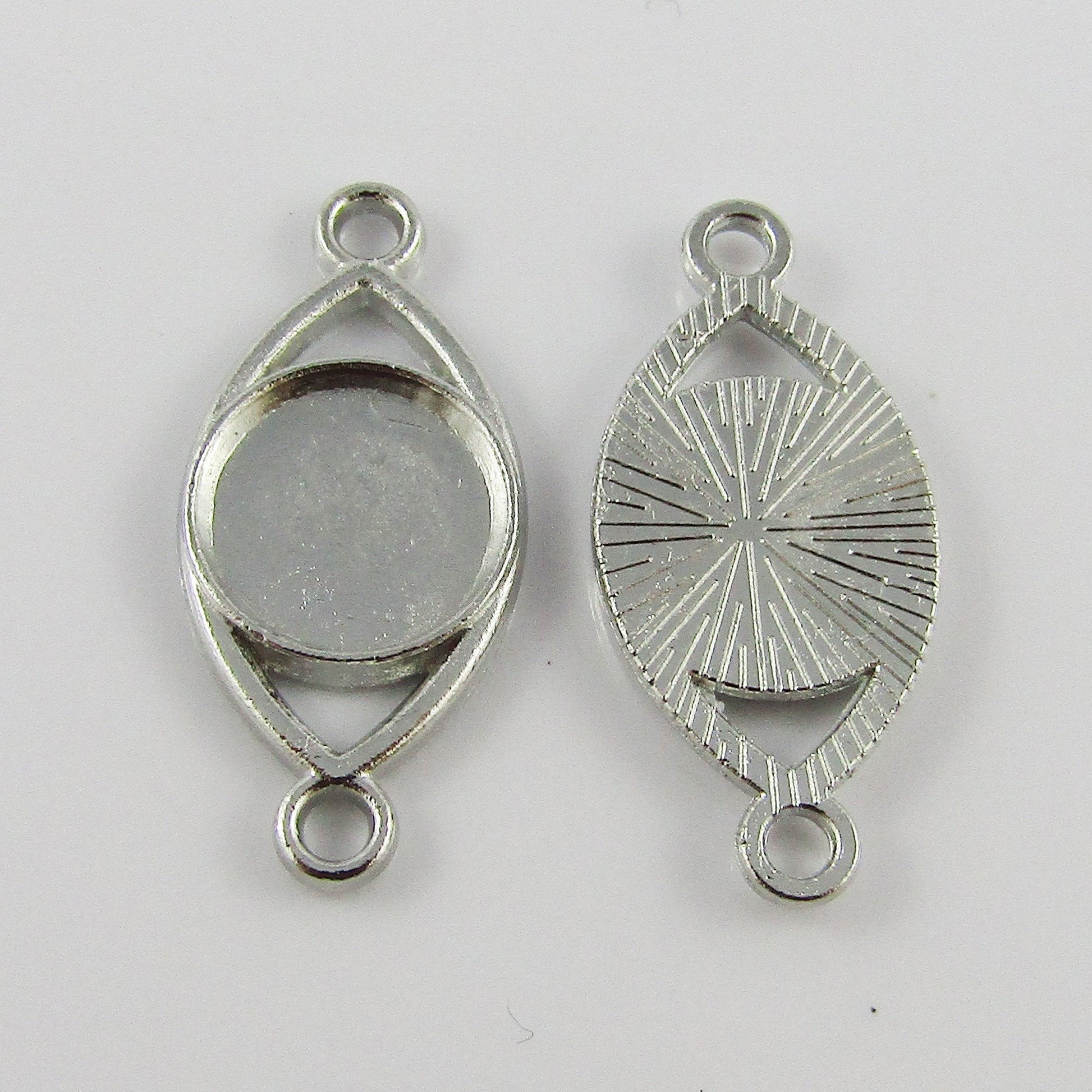 Bulk 10pcs Horse Eye Cabochon Connector Setting Alloy Fit 10mm ROUND Cabs Silver