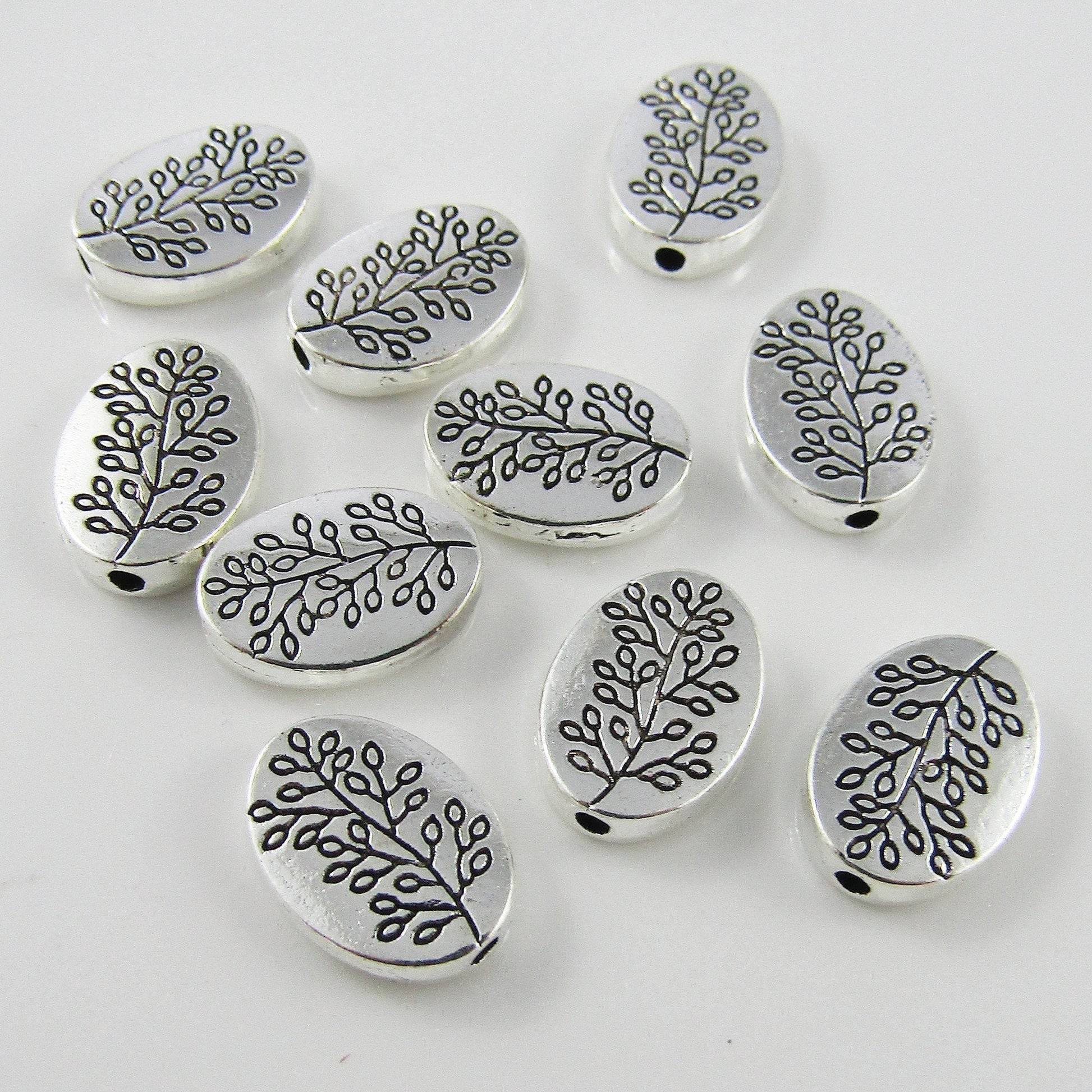Bulk 10pcs Oval Leaf Print Bead Alloy 13x10x3mm Hole size 1.5mm