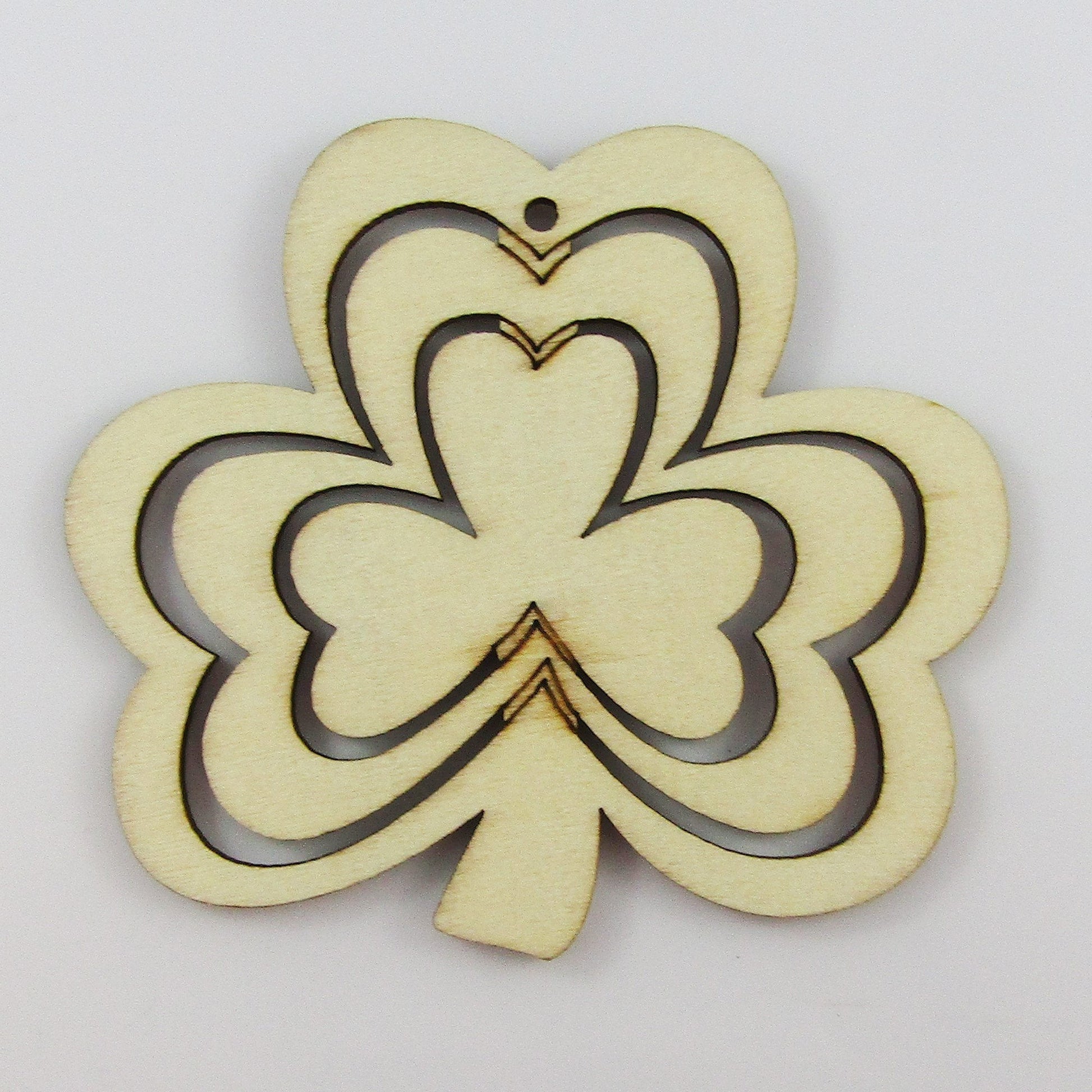 Bulk 10pcs St Patricks Irish Shamrock Unfinished Wood Pendant 72x81mm Kids Craft