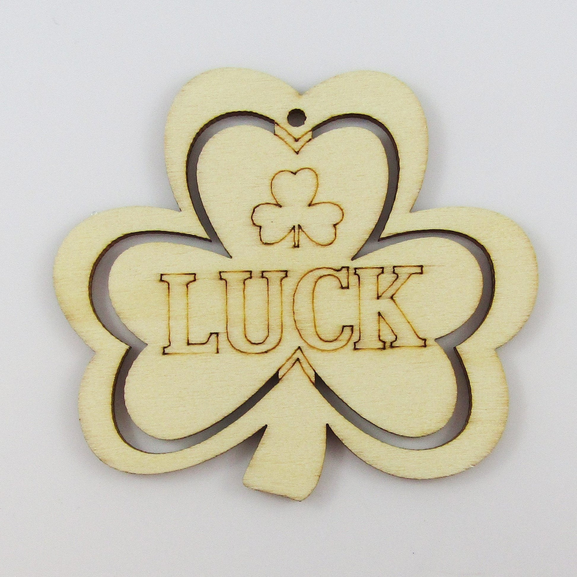 Bulk 10pcs St Patricks Luck Shamrock Unfinished Wood Pendant 72x81mm Kids Craft