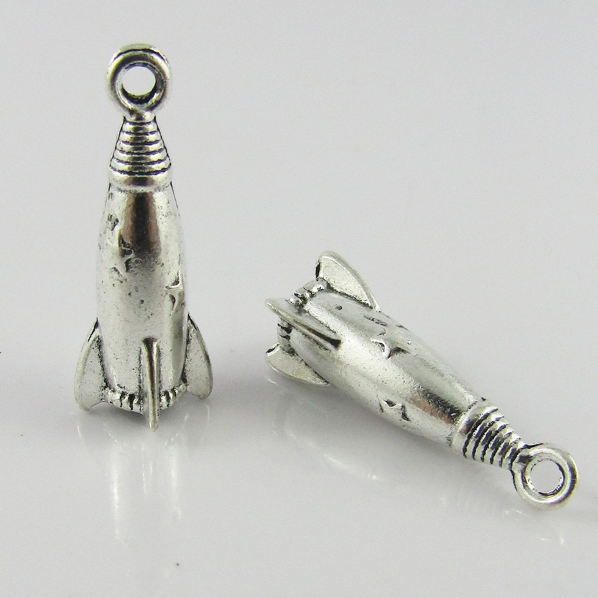 Bulk 3D Rocket Charm Pendant Space Rocket Alloy 24x7mm Select Qty
