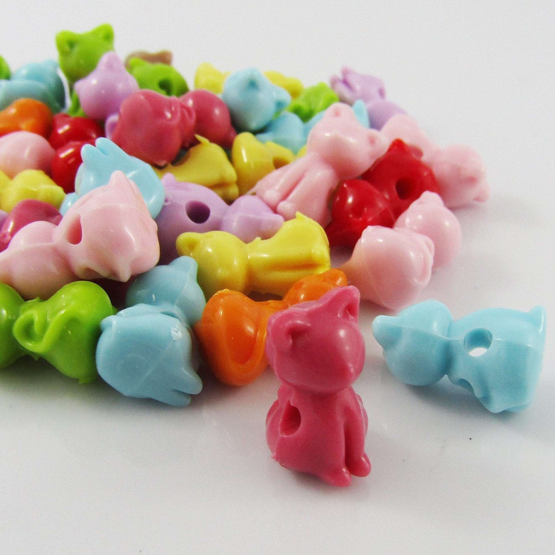 Bulk 50pcs 3D Cat Kitten Bead Acrylic Opaque Mixed Color 14x8x9mm Hole 2mm
