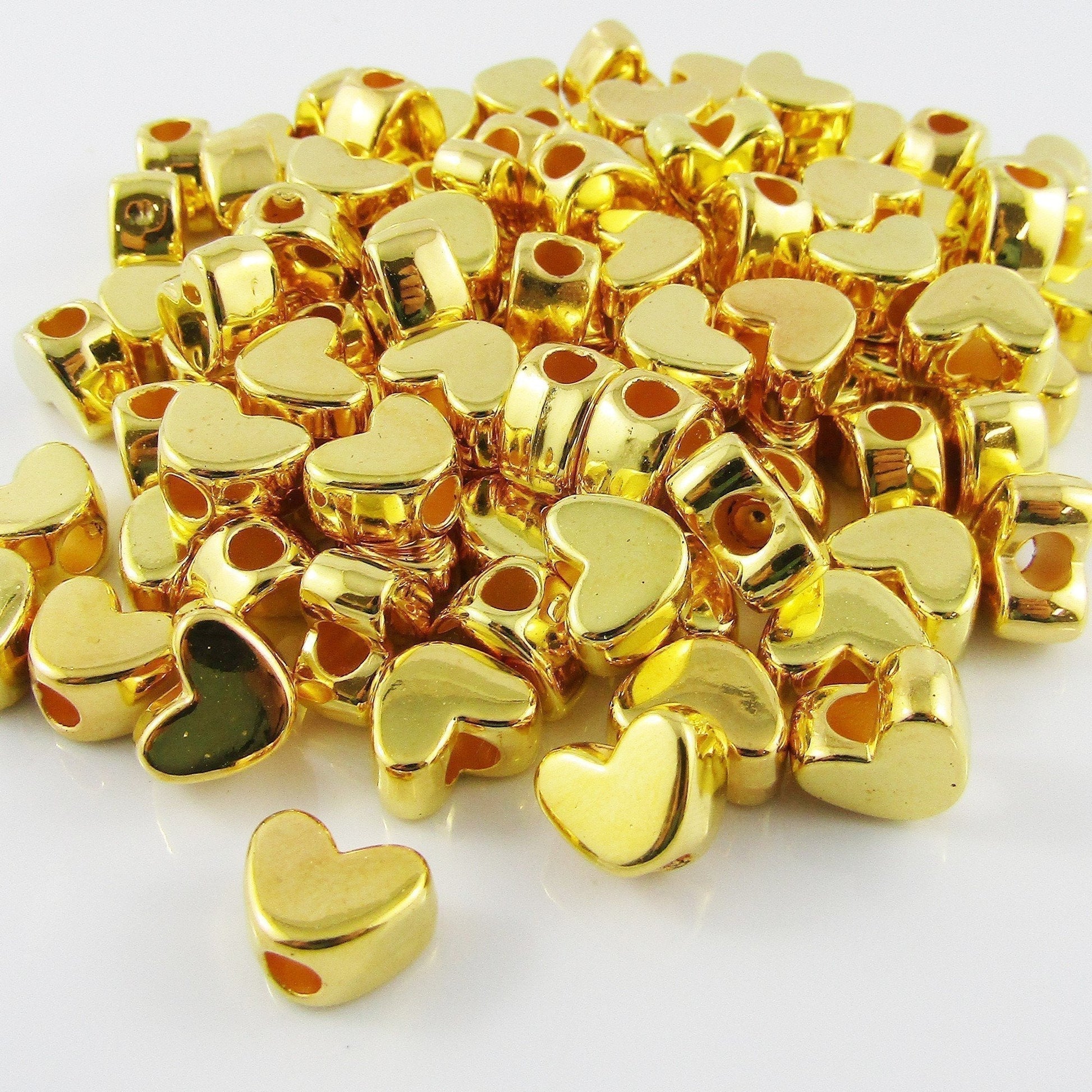 Bulk 50pcs Acrylic Heart Spacer Bead Craft Beads 12x9mm Hole 3.8mm Golden