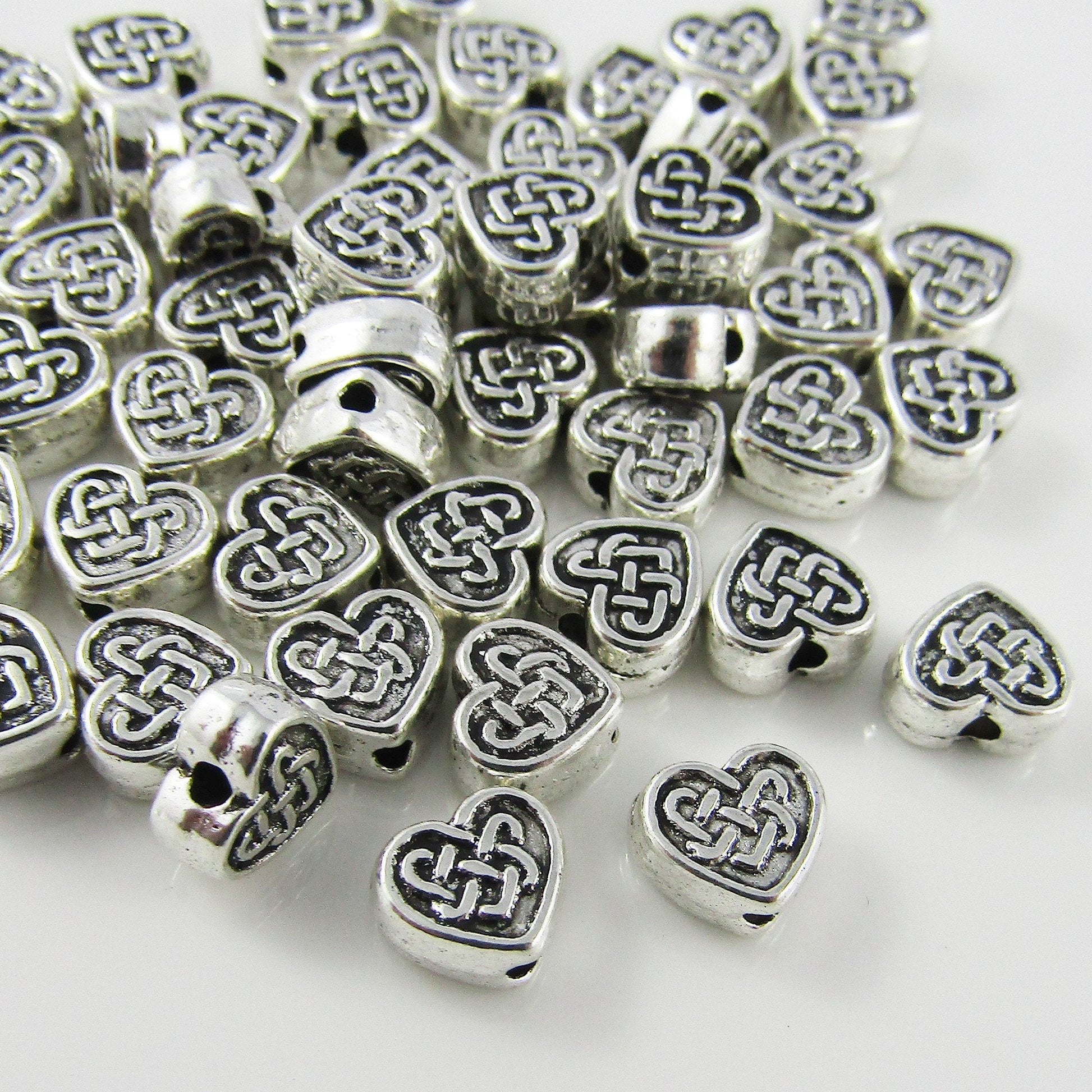Bulk 50pcs Chinese Knot Heart Bead Alloy 7x7mm Hole size 1.5mm