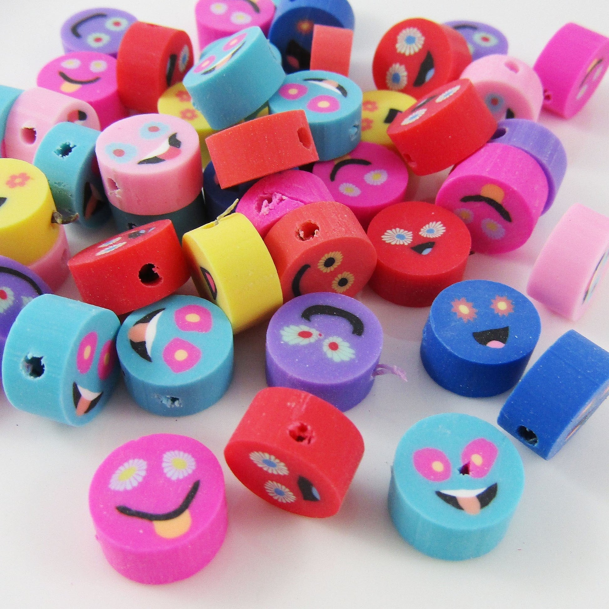 Bulk 50pcs Polymer Clay Emoji Face 9.5x9.5x4.5mm Hole 1.5mm
