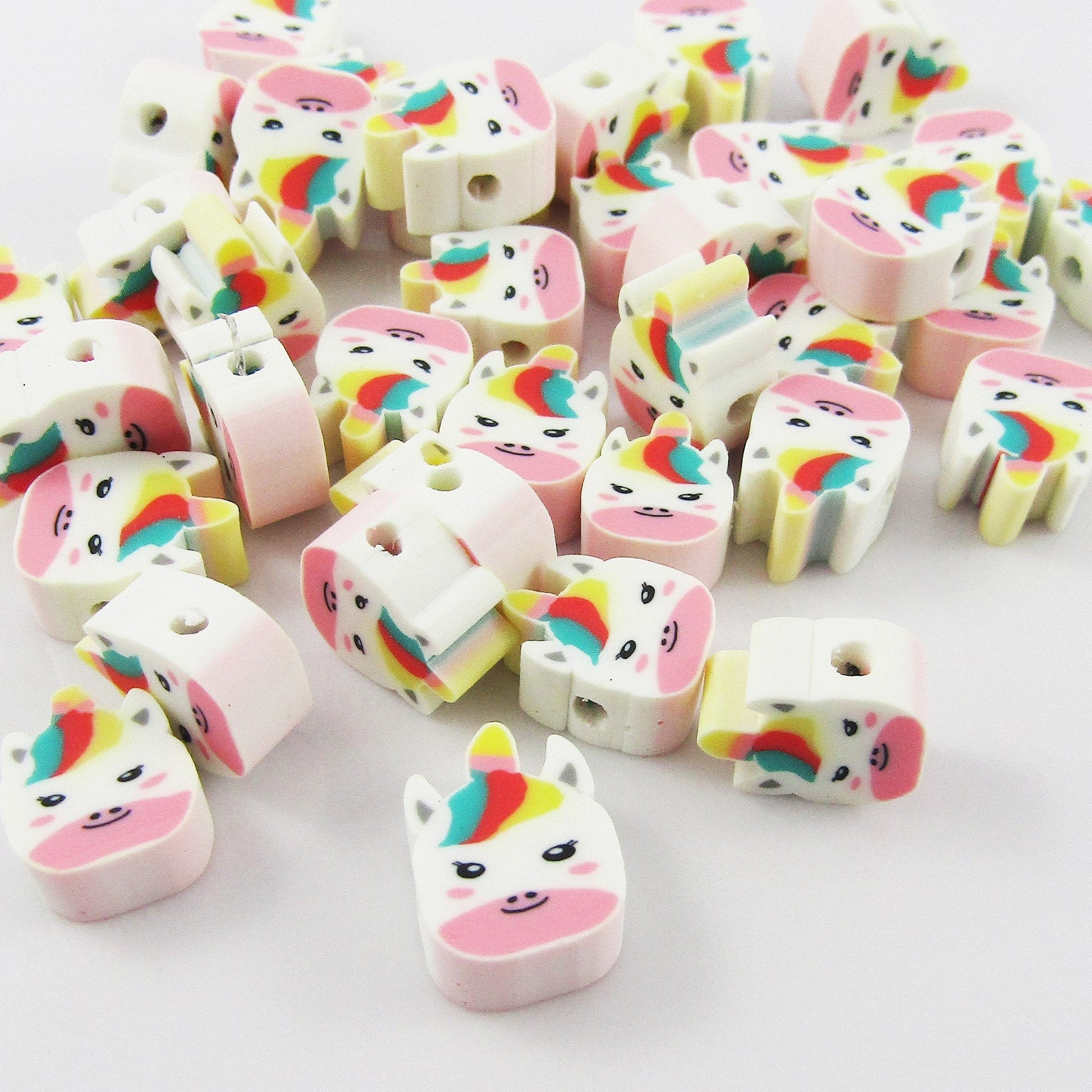 Bulk 50pcs Polymer Clay Unicorn Beads 11x8x4.5mm Hole 1.5mm