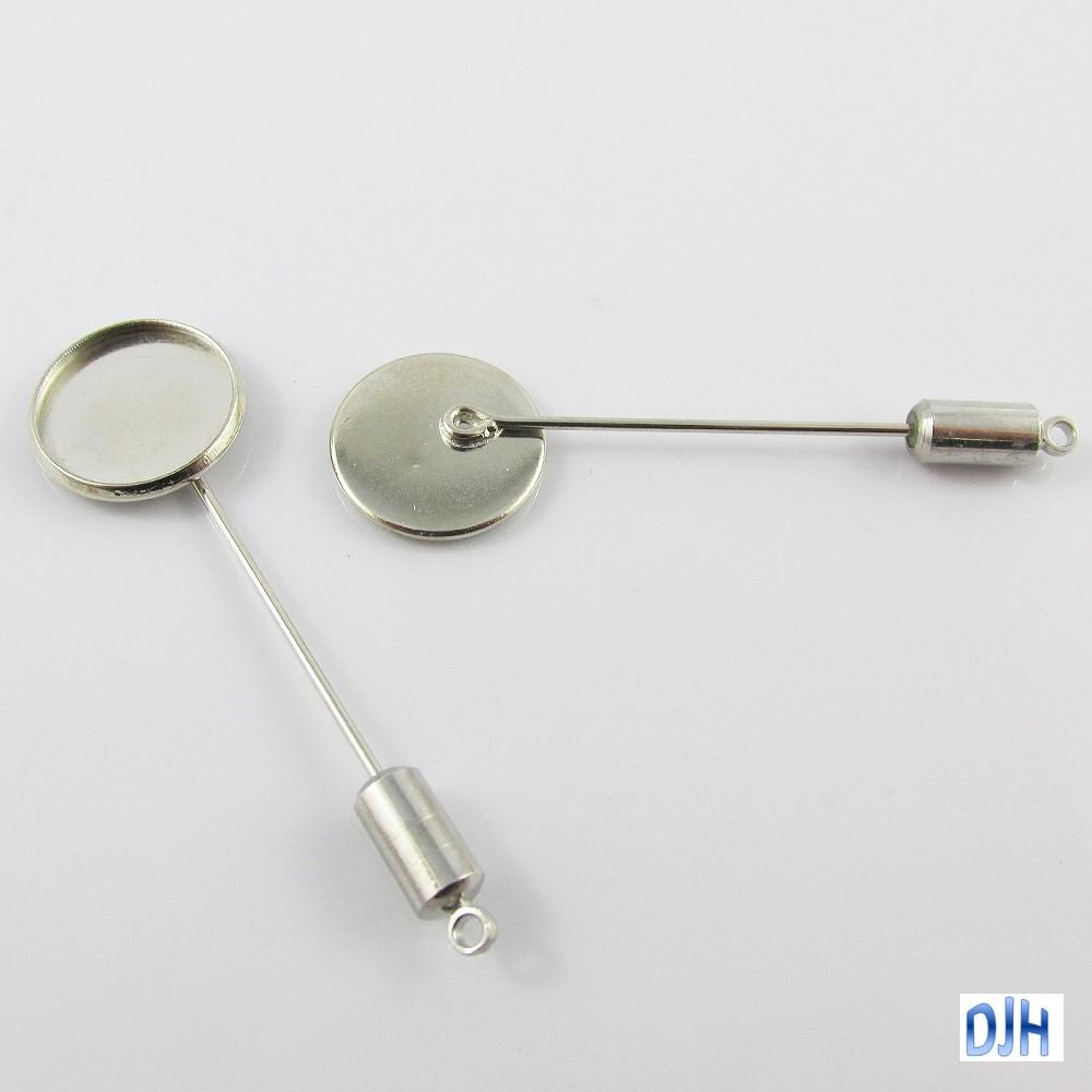 Bulk 5pk DIY Cabochon Setting Stick Pin Brooch with End Loop to hang Charms 55mm