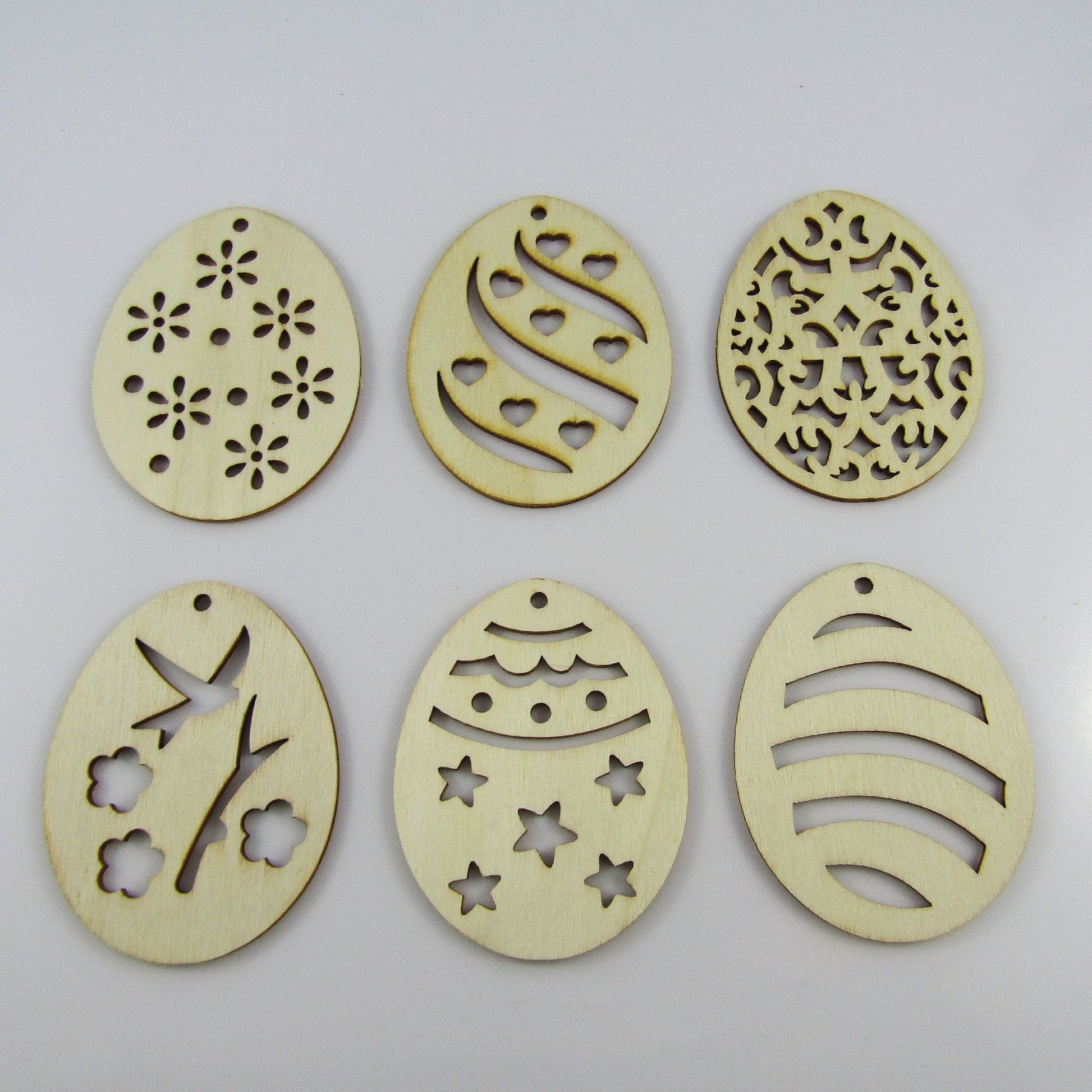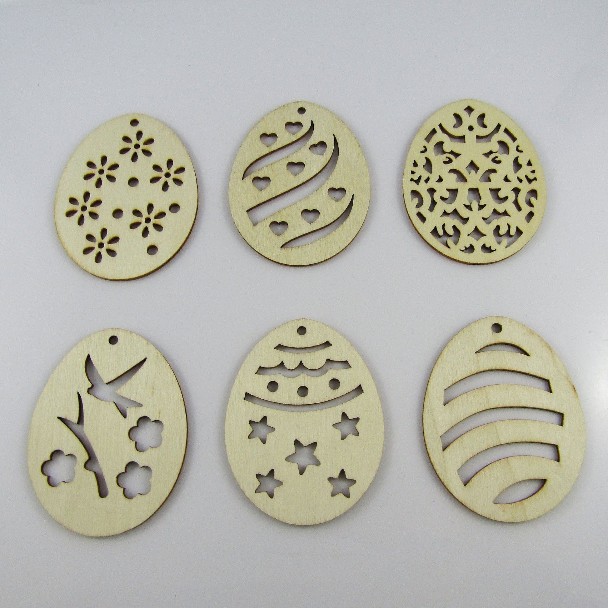 Bulk 6pc Set Easter Egg Design Unfinished Wood Pendant Natural 60x80mm KidsCraft