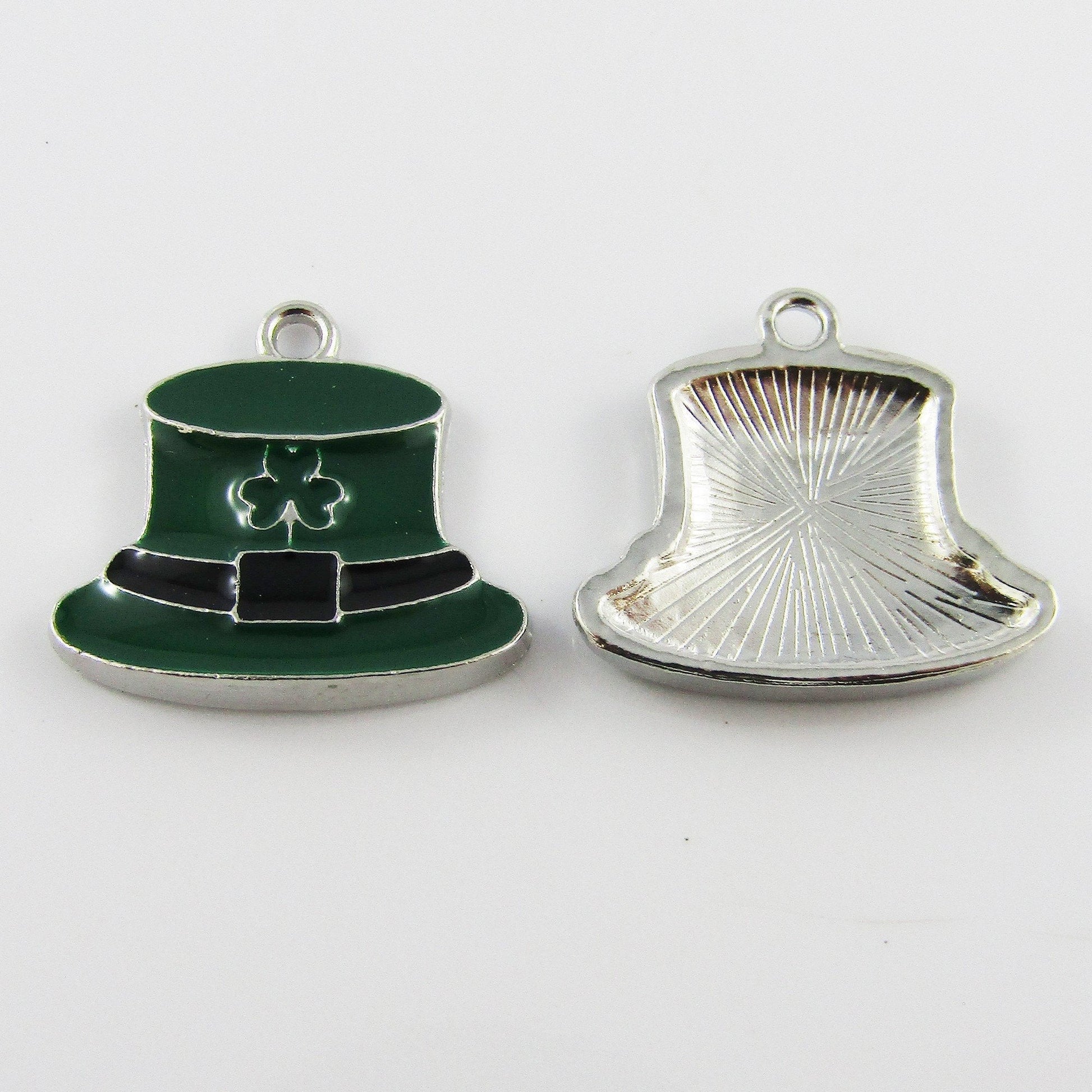 Bulk 6pce Enamel Irish Hat Shamrock Charm Pendant St Patricks Day 22x20mm
