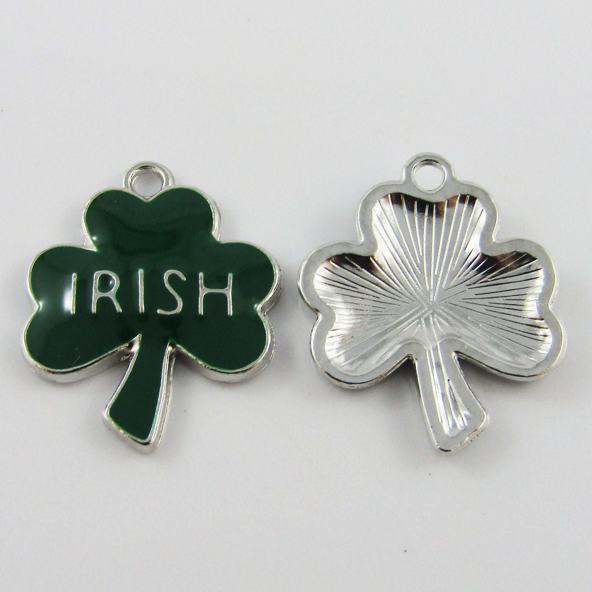 Bulk 6pce Enamel Irish Shamrock Clover Charm Pendant St Patricks Day 24x19mm