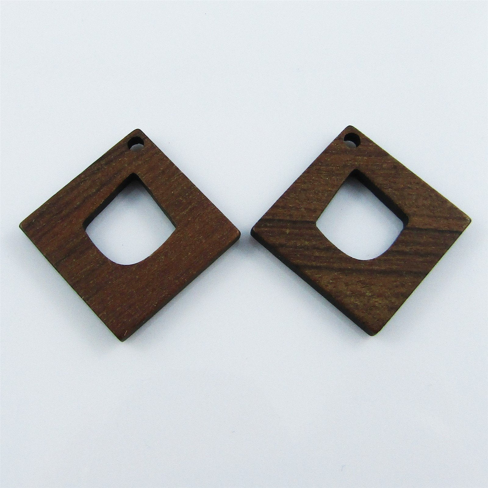 Bulk Diamond Wood Charm Pendant Natural Organic 27.5x27.5mm Select Qty
