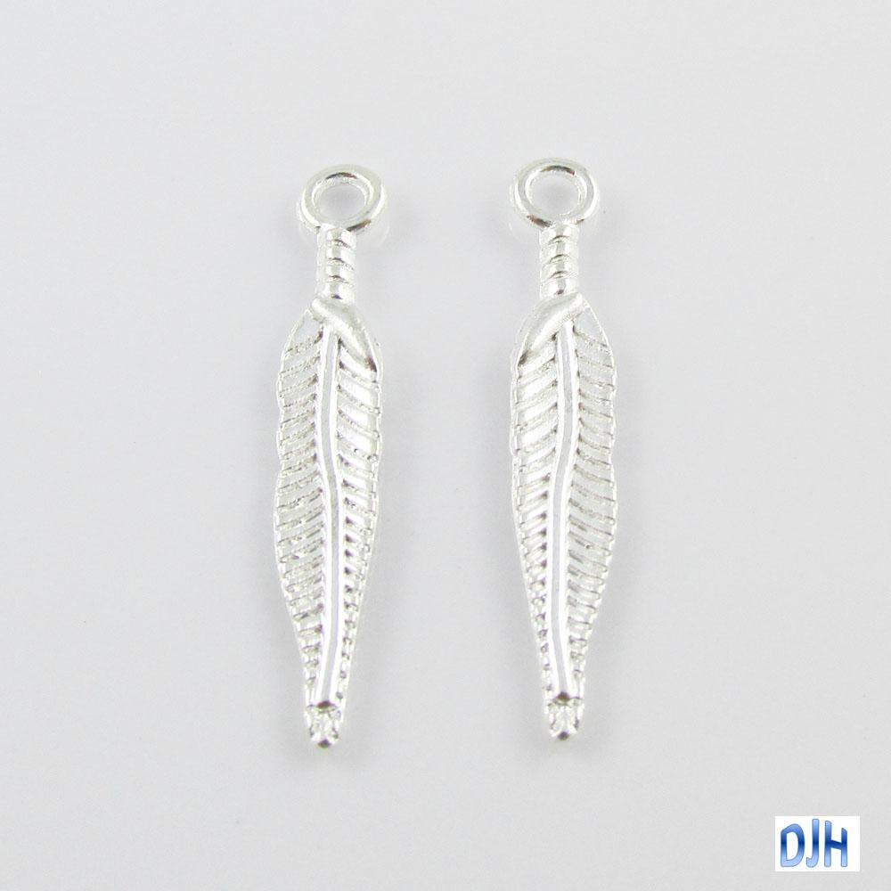 Bulk Feather Charm Pendant Silver Plate finish 29x5mm Select Qty