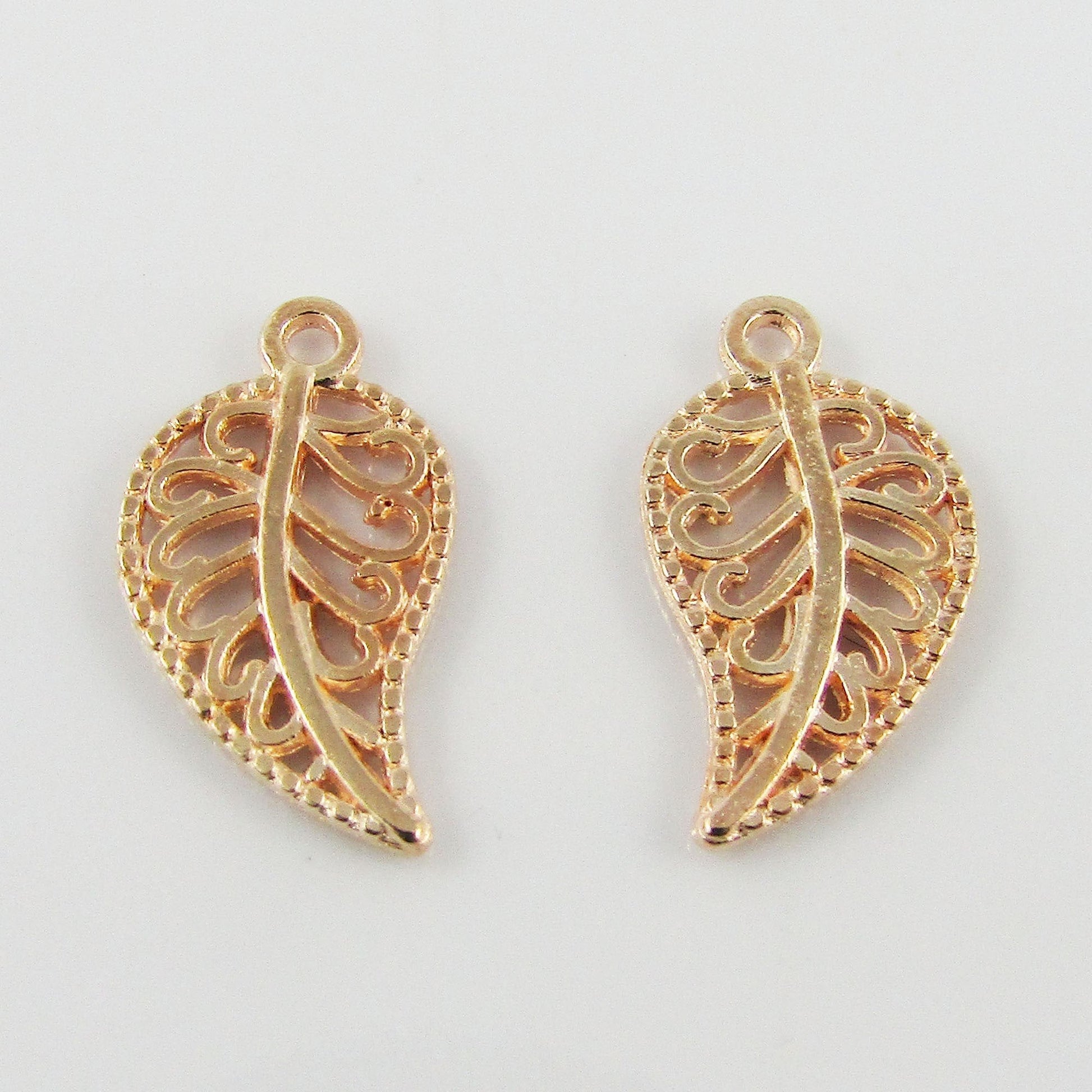 BULK Filigree Leaf Rose Gold Charm Pendant Plant Nature 18x10mm Select Qty