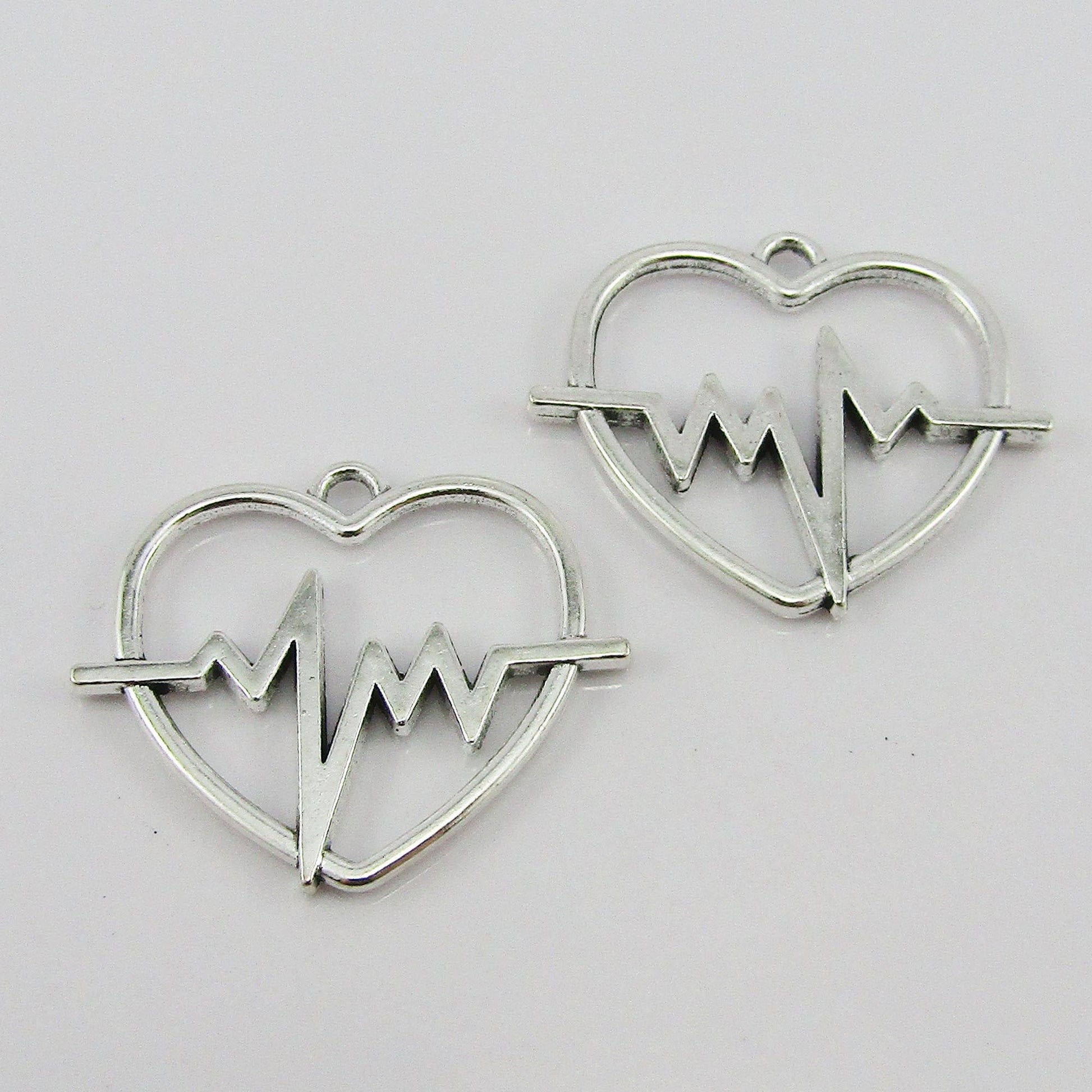 Bulk Heartbeat Hollow Heart Charm Pendant Silver Tone 24.5x29x2mm Select Qty
