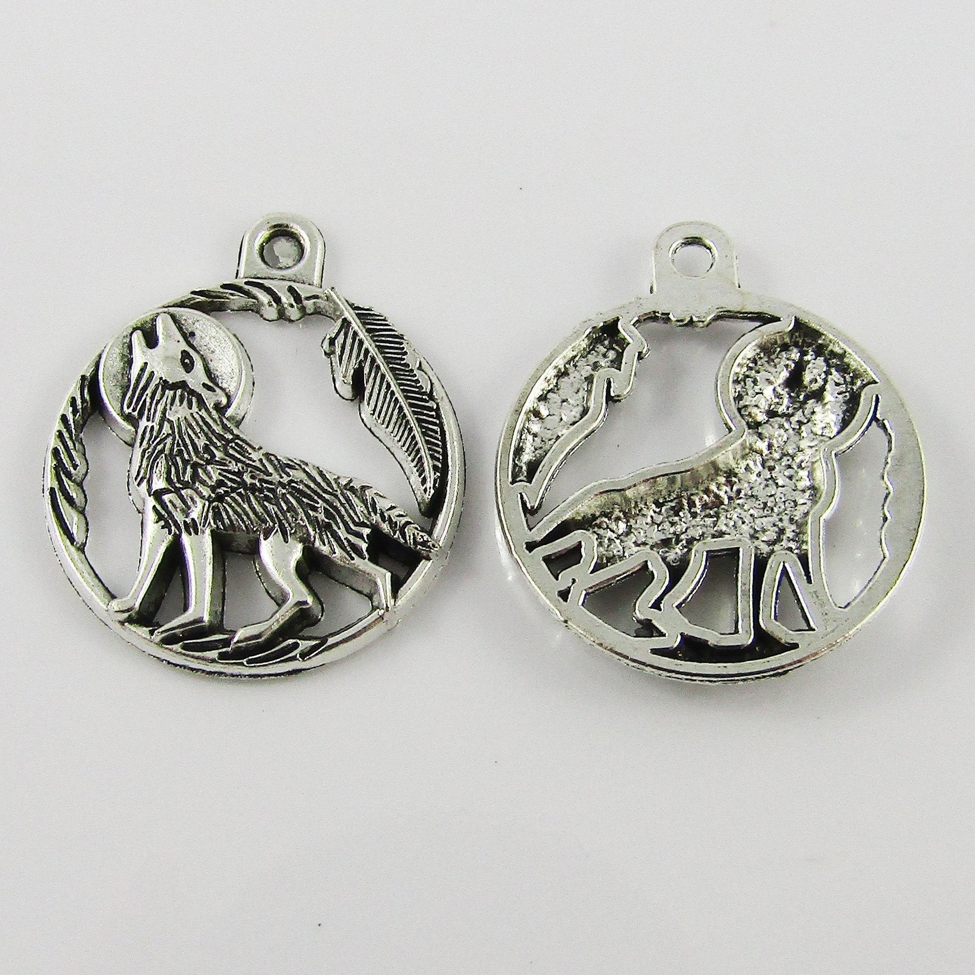 Bulk Howling Wolf Round Charm Pendant American Wolf Alloy 25x21mm Select Qty