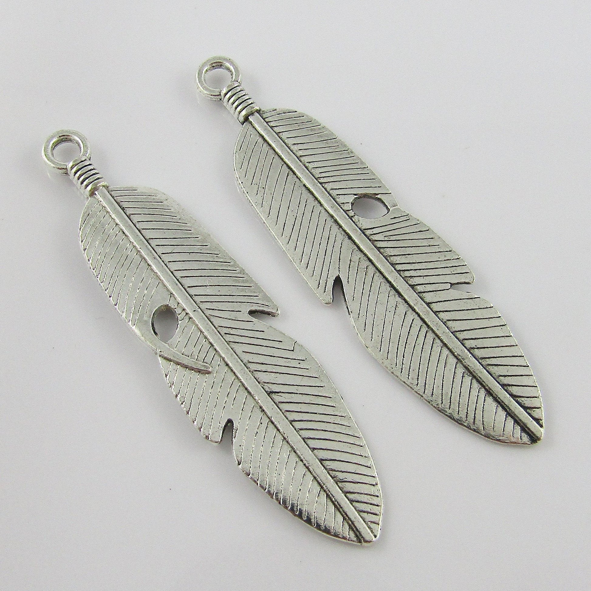 Bulk Large Feather Charm Pendant Leaf 58x15mm Select Qty