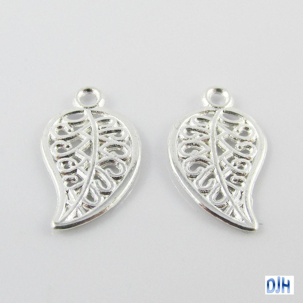 Bulk Leaf Charm Pendant Filigree Nature Autumn Silver Plate 18x10mm Select Qty