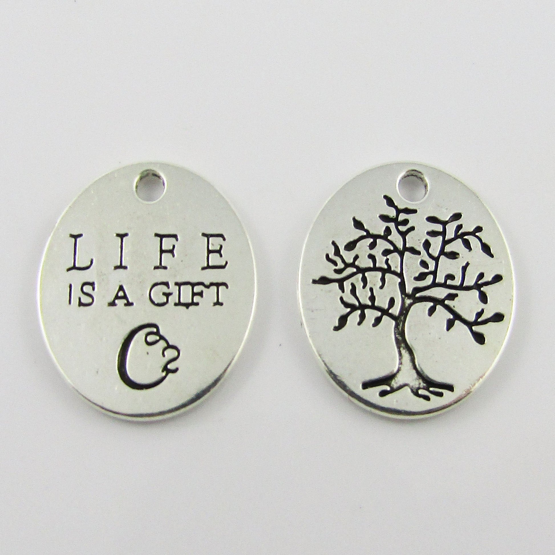 BULK Life is a Gift Tree Message Disc Charm Pendant 20x18mm Select Qty