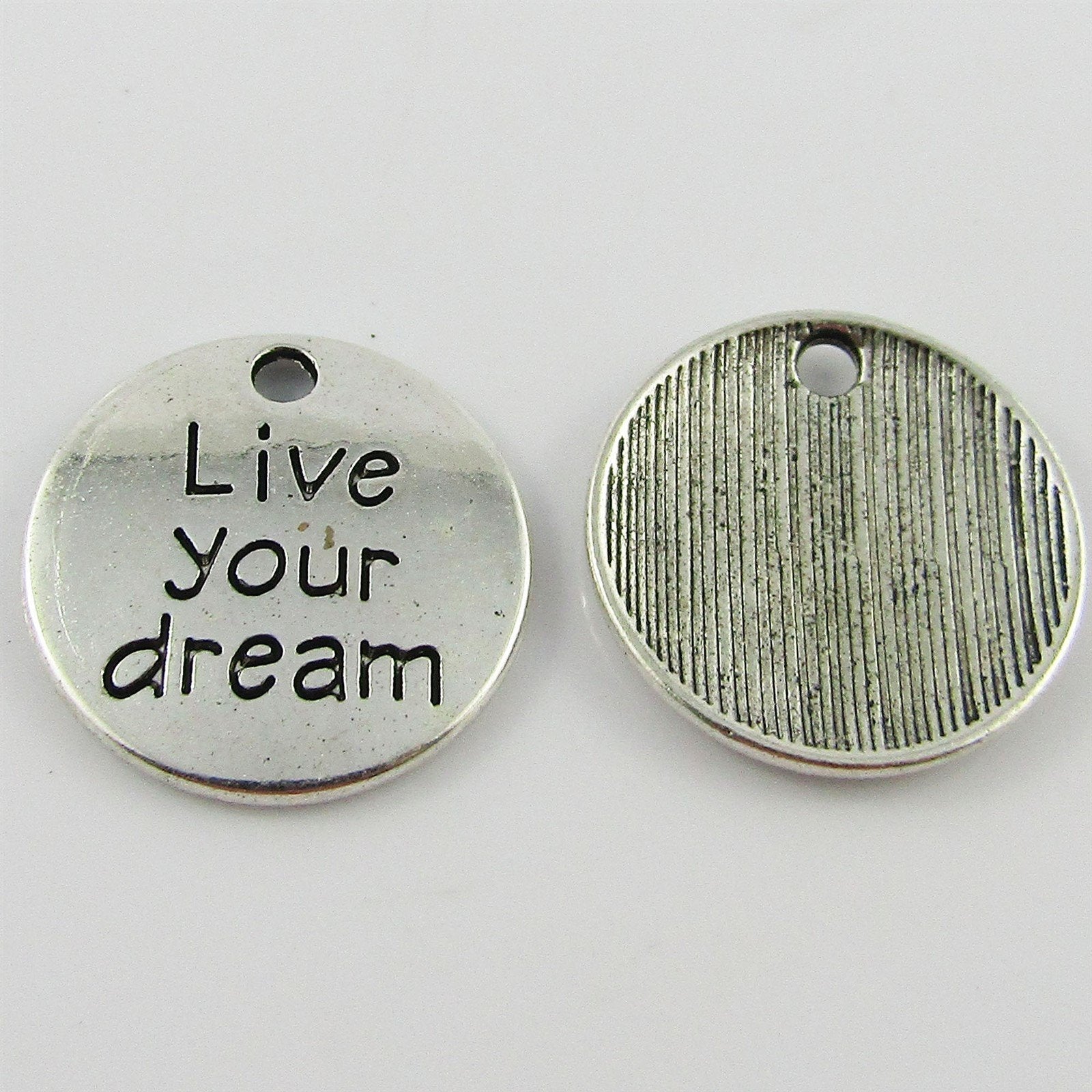Bulk Live Your Dream Charm Pendant Message Disc 20mm Select Qty