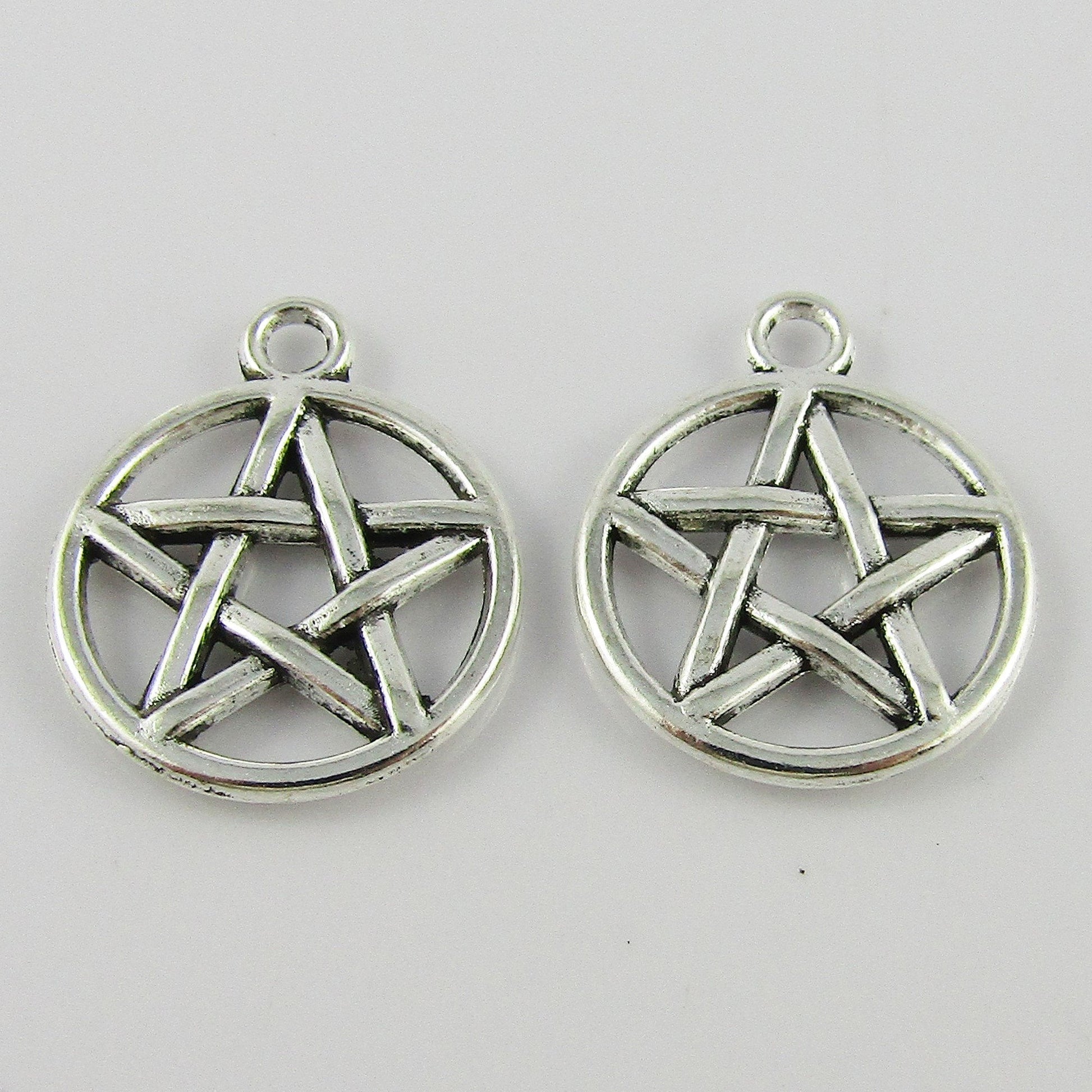 Bulk Pentagram Charm Silver Pendant Wicca Pagan Symbol 20x17mm Select Qty