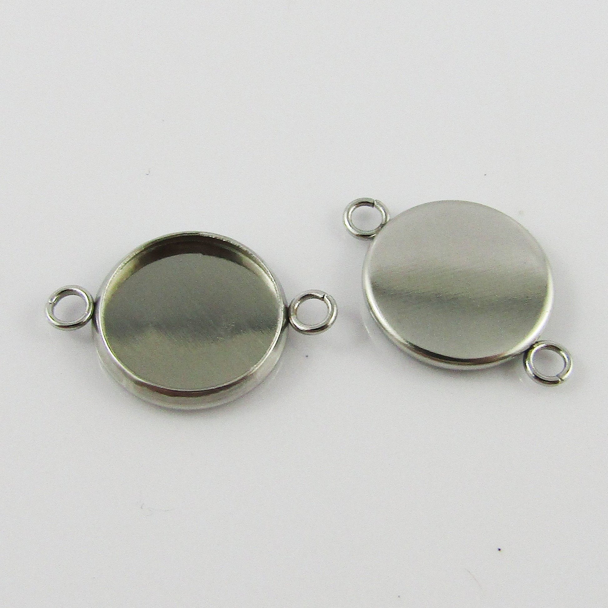 Bulk 10 pieces Round Cabochon Setting Connector 17x12mm Fit 10mm Cabs 304 SSteel