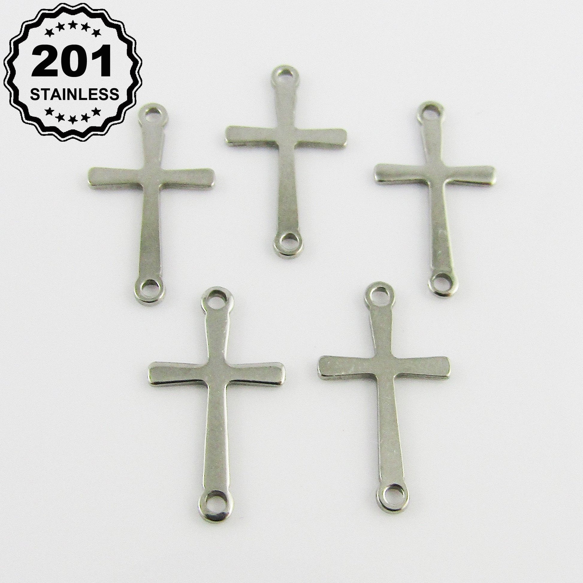 Bulk Simple Crucifix Cross Connector Charm Pendant 201 Stainless Steel 17x9mm