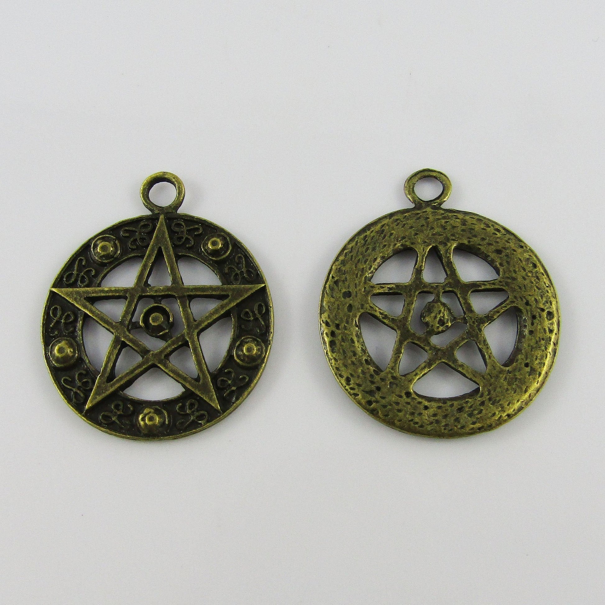 Bulk Wicca Pentagram Charm Pendant Symbol Antique Bronze 33x39mm Select Qty