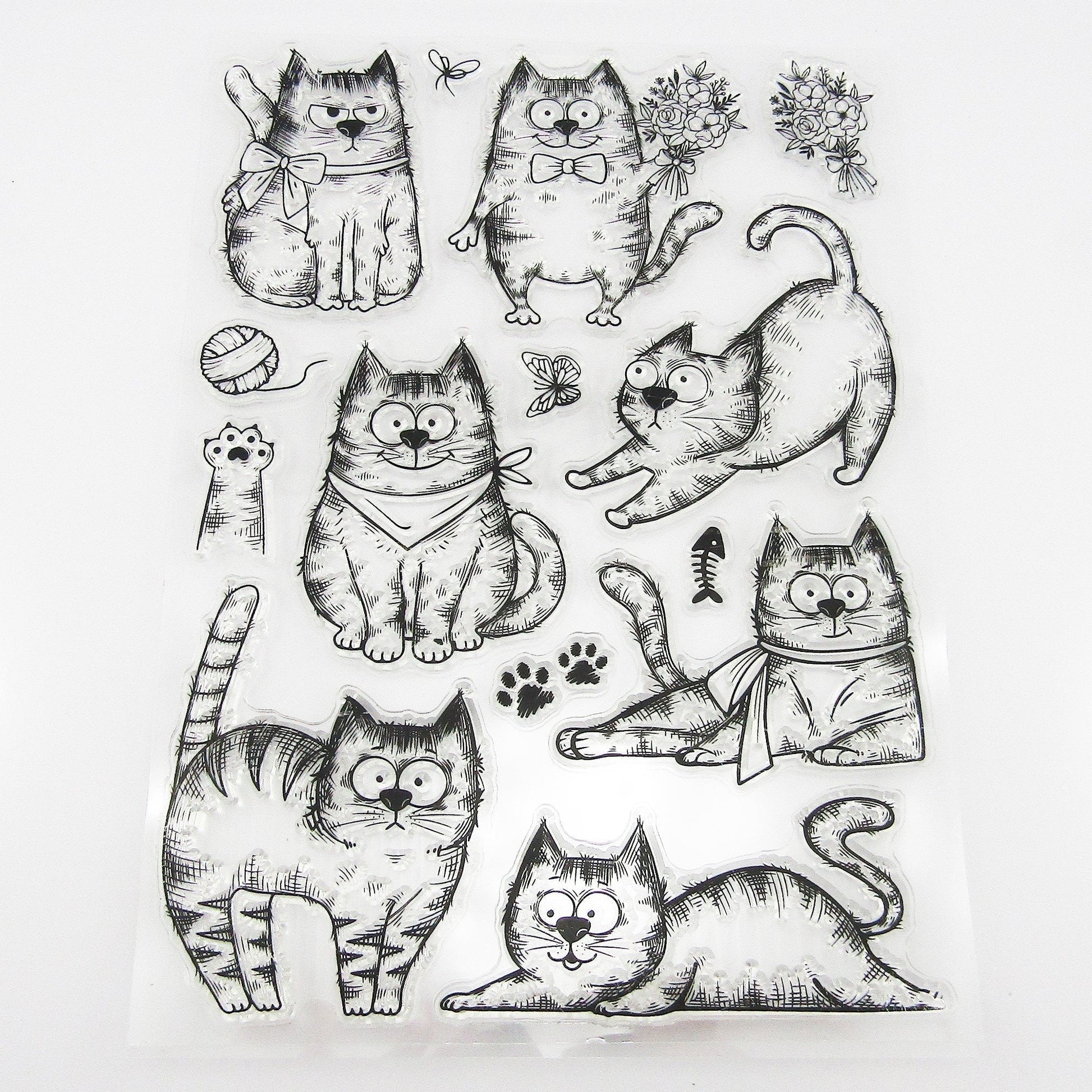 Cartoon Cat Clear Stamp Sheet Silicone Journal Scrapbook Cards